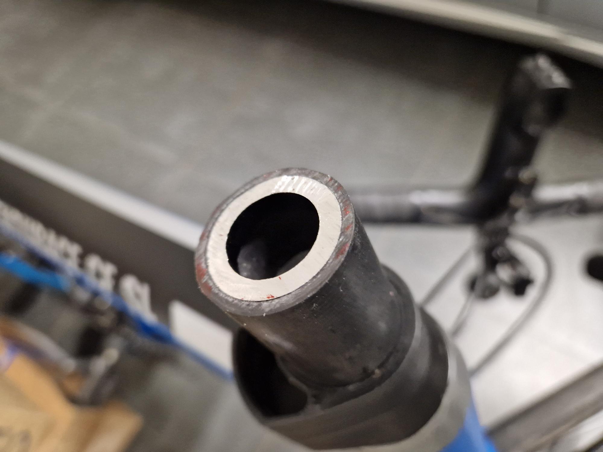 Vandaag vorkbuis ingekort met een zeer domme actie. Ik was er me niet bewust van maar bovenop de vorkbuis zit er een metalen versterking. Toen ik begon te zagen heb ik me wel afgevraagd waarom dat zo moeizaam ging en toen ik het had doorgezaagd zag ik dat ik ook een stalen buis heb doorgezaagd.