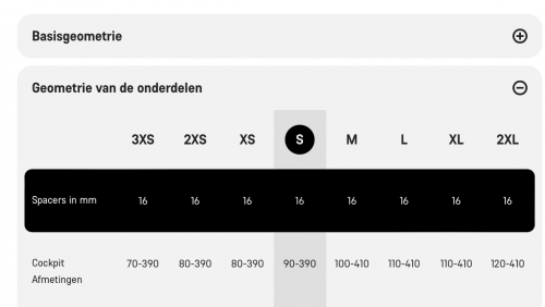 Ik ben al dagen aan het rekenen en kom er nog niet uit. Ik heb een Ultimate 2017 maat S. Daar zit nut een H31 cockpit om met ca 17mm spacers. De stack is 54,6. Dan komen er spacers en de stuurpen/cockpit. Bovenkant stuur is dan 54,6+1,7 spacers + 6cm cockpit = 62,3 cm (stack+?).
