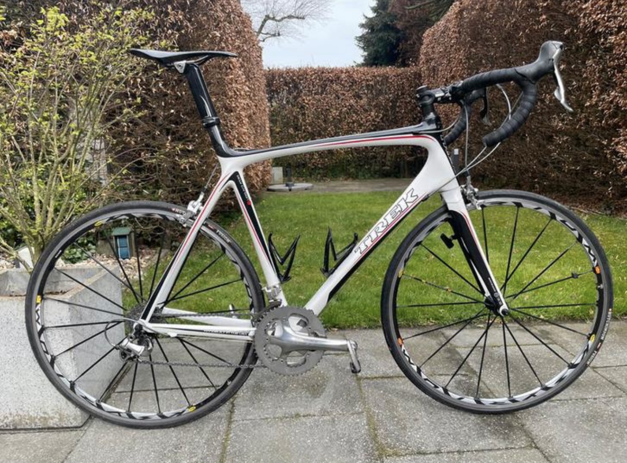 Op de zoektocht naar mijn eerste racefiets ben ik de volgende fiets tegengekomen: Trek Madone 6.9 uit het jaar 2008. Frame maat 62.
