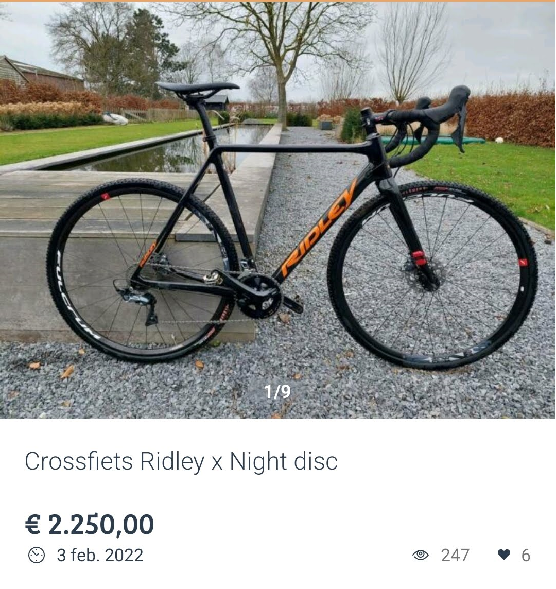 Nu kan ik van een dergelijke foto ook echt niet beoordelen of het echt is, maar voor een Ridley crosser verwacht je dat de markt te klein is voor de namaak boeren.