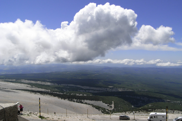 Gisteren heb ik de Mt-Ventoux beklommen vanuit Bedoin. Zoals Le Grimpeur al opmerkte stak er ook een aardige wind op, omdat deze uit het noorden kwam had ik daar niet zo veel last van. De temperatuur was met 22 graden aangenaam, alhoewel in het bos toch aardig wat zweetdruppels van mijn hoofd rolden. Op de top, die na 1h50 werd bereikt, was het best fris. Snel naar beneden dus. In de afdaling had ik meer last van de stevige wind, licht zwabberend toch veilig in Malaucene aangekomen.