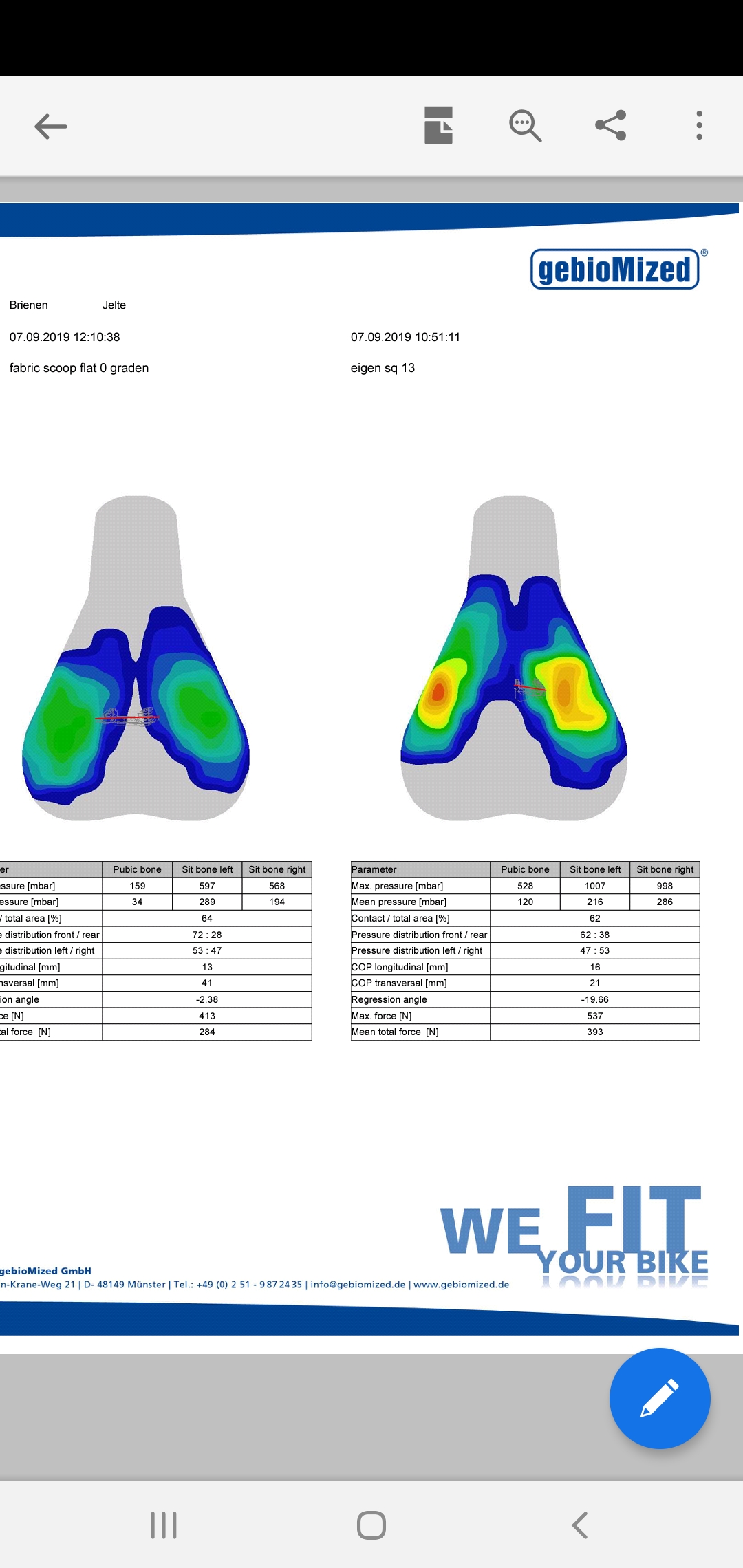 Met name de zadeldrukmeting ben ik erg blij mee. Ik heb heel veel zadels geprobeerd en uiteindelijk lijkt en voelt het een stuk beter