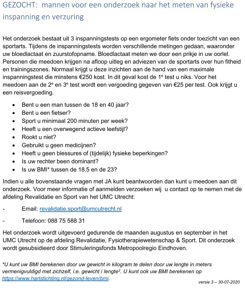 Er staat weliswaar augustus maar ik weet dat de mensen achter het onderzoek nog steeds fietsers zoeken voor deelname.