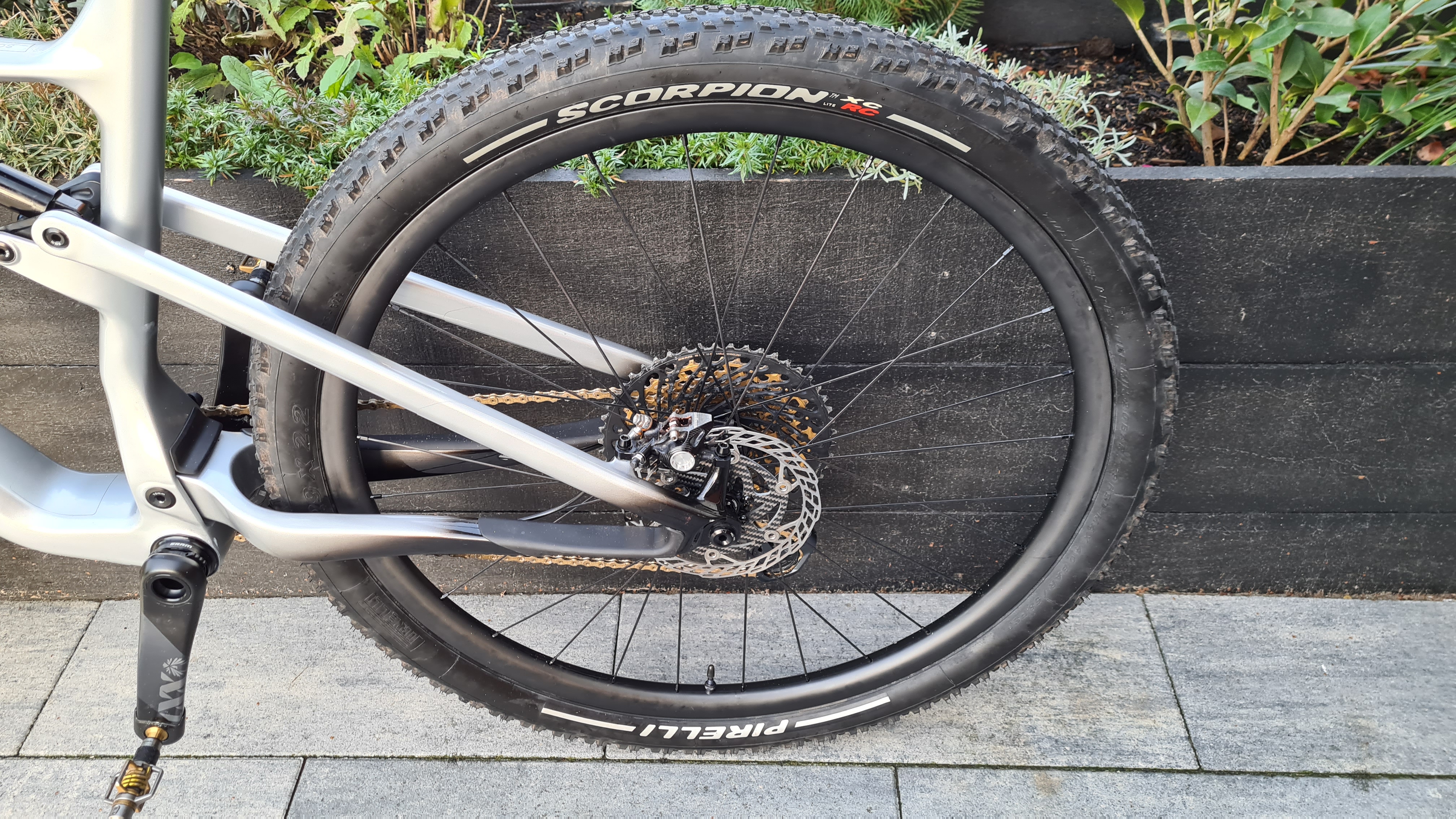 Voor dit seizoen gekozen voor de Pirelli M voor en RC achter. De XC is een semislick met wat noppen aan de zijkant. Normaal ben ik daar geen voorstander van, maar deze band is top zeker achter. Als het droog is rij ik hem ook voor, maar de grip is minder dan de M. De M houd zich altijd goed en de rolweerstand is maar beperkt. De voorkant is veel zekerder met de M.