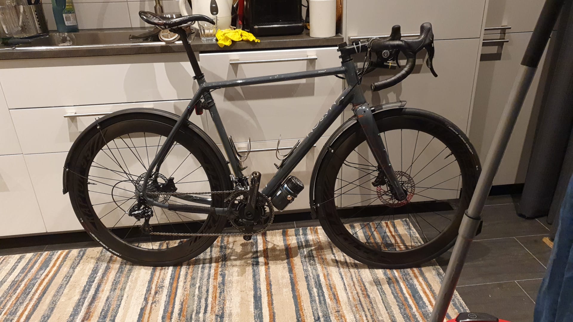 Ik gebruik hem vooral in de winter als wegfiets, vanwege de vaste spatborden die er dan op gaan. Maar ook op de echte toerritjes waar ik verwacht veel slechte wegen tegen te komen, als het regent, of wanneer ik wat kleine spullen wil meenemen. Eigenlijk vooral momenten dat de pure snelheid er zeker niet toe doet. Tuurlijk ik kan er prima hard op fietsen en dat gebeurt soms ook. De wielbasis is in mijn ogen wel te lang met 104.5cm om hem echt snel te laten voelen in groepsritten met de club. Hun wegvariant de resolution is zomaar meer dan 2cm korter in dezelfde maat. Ik heb een 58cm bokeh.