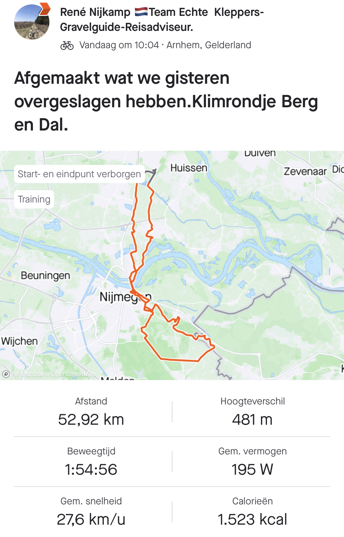 Ging best goed eigenlijk. 110 km, 900 hoogtemeters. Fietst gedraagt zich voortreffelijk, zeker in snelle afdalingen geeft ie vel vertrouwen.