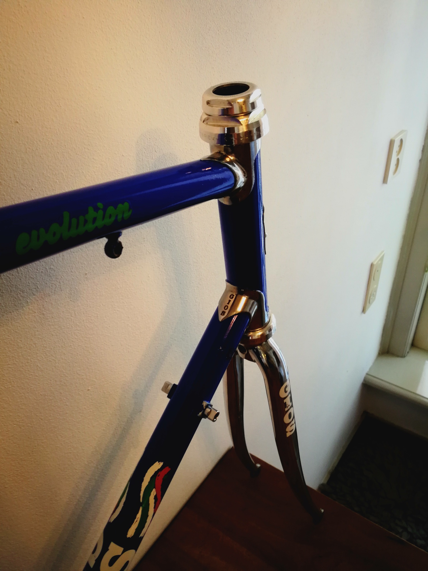 Zo, eindelijk een beetje tijd om de fiets op te bouwen. Alle onderdelen zijn opgepoetst en klaar om te monteren. Ik ben blij dat ik de roestvlekjes op de vork weggekregen heb dank zij een schuursponsje en "commandant" cleaner