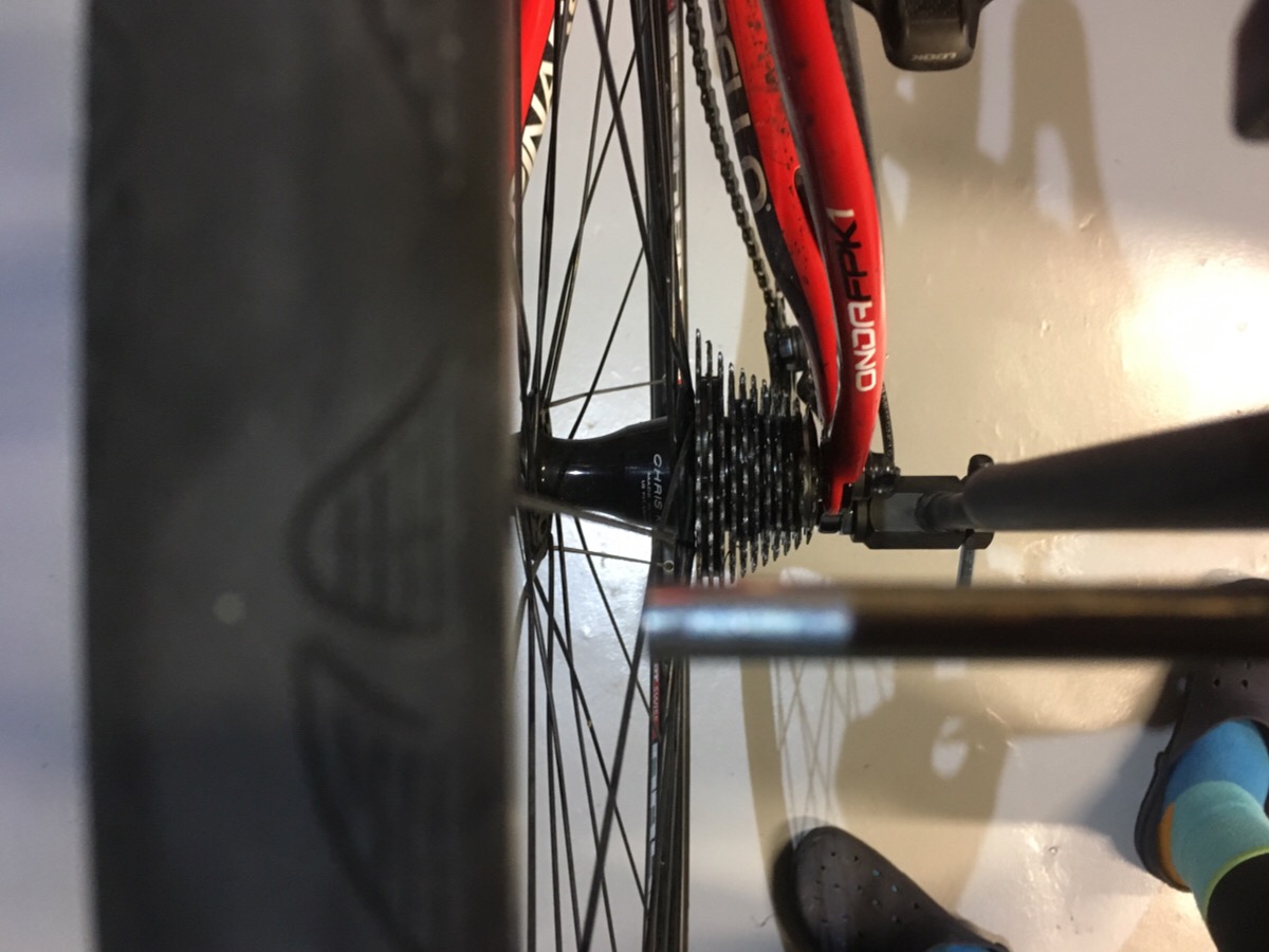 Al langere tijd een licht rateltje bij een mooi rechte kettinglijn. Toch maar 's een derailleurpadrichter gekocht (Cyclus) en aan de slag gegaan. Bleek wel een afwijking, bovenkant wiel vs onderkant wiel zo'n. 2 cm. Recht gezet en wat een verschil! Ratel weg, maar sowieso stiller geworden. Kleine moeite, groot plezier!
