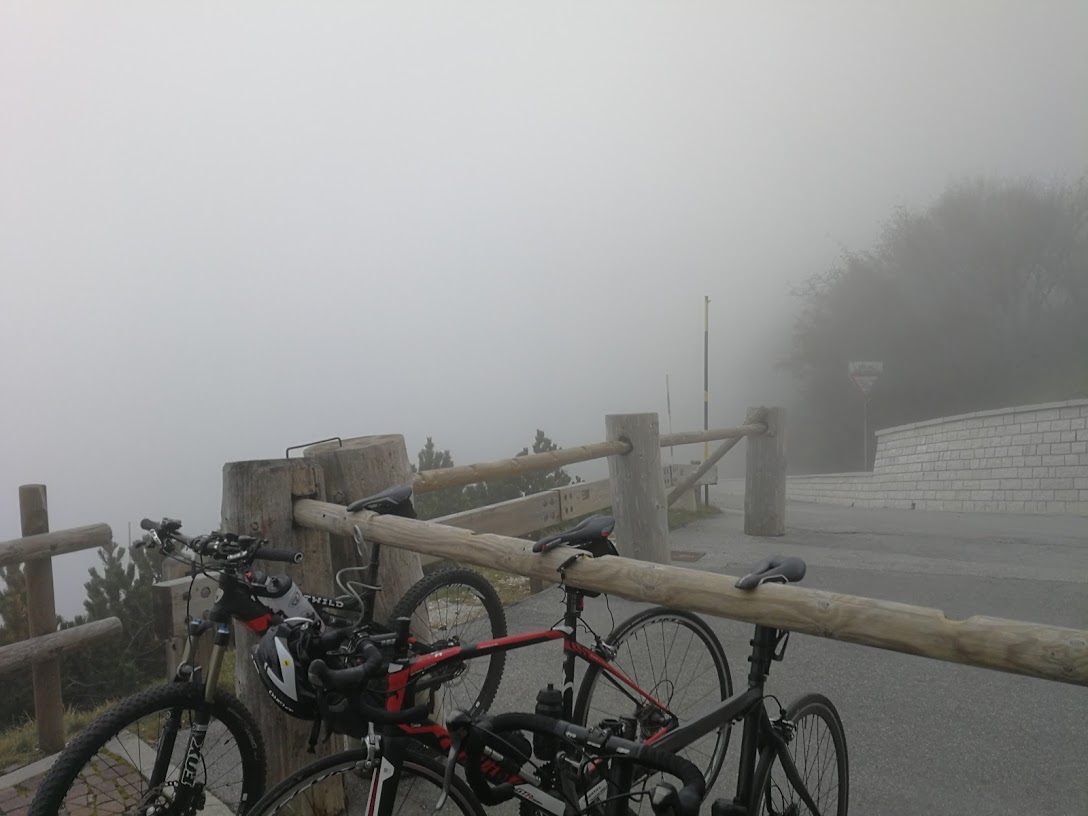 Vandaag een rit op een neer van Vicenza naar de Monte Grappa via Romano D'Ezzelino gereden. In de Povlakte was het zonnig en met 22 graden bijzonder aangenaam. Naar mate de klim vorderde werden de bladen steeds bonter en ging de temperatuur steeds lager. De laatste 3 kilometer voor de top letterlijk in de wolken gereden bij 10 graden. Enkele jaren geleden was ik al een keer naar boven geharkt en dat viel, zeker op het einde, niet mee. Dit was de eerste keer dat ik het ook leuk vond. Behalve voor een fotostop en een cappuccino met gebak halverwege rustig omhoog gepaddeld.