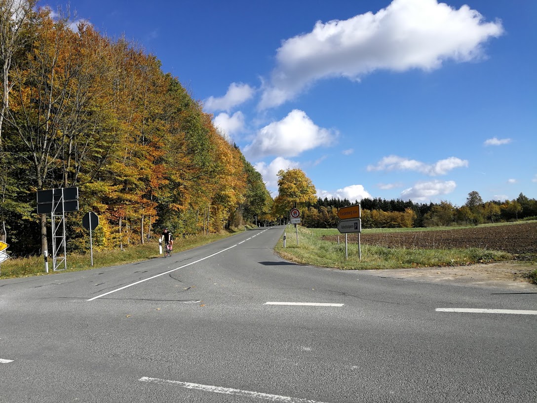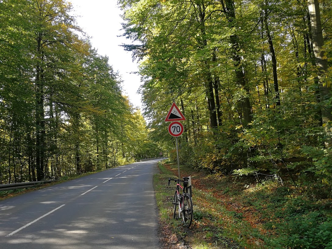 Na de pauze zijn we vervolgens via de Moehneradweg richting het beginpunt gefietst. Een erg mooi pad met strak asfalt dat parallel aan de Bundesstrasse loopt en over 20 km vals plat naar beneden gaat. Kort voor Ruethen komt er nog een klim weg van de straat door het bos maar dat mag eigenlijk geen naam hebben. En de wind bleef beneden in het dal beperkt, dus het was een werkelijk fijn stuk om te fietsen. Omdat mijn reisgenoot nog haar Gran Fondo wilde halen nog even een Excursie in het Bieberdal gemaakt. Er loopt daar een geasfalteerde weg die aan het einde in onverhard overgaat maar het is werkelijk mooi daar: