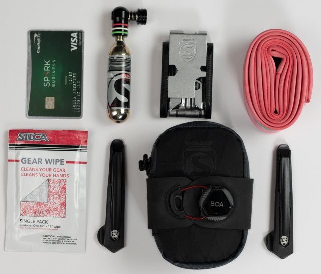 Gebruik hem ook sinds kort, heb een Schwalbe SV20 Extra Light Binnenband erin met een CO2 patroon/houder , 2 bandenlichters, multitool en patch kit. Biba word nog vervangen door een aerothan en dan stop ik mijn dynaplug pro plug er ook bij. Moet wel passen.