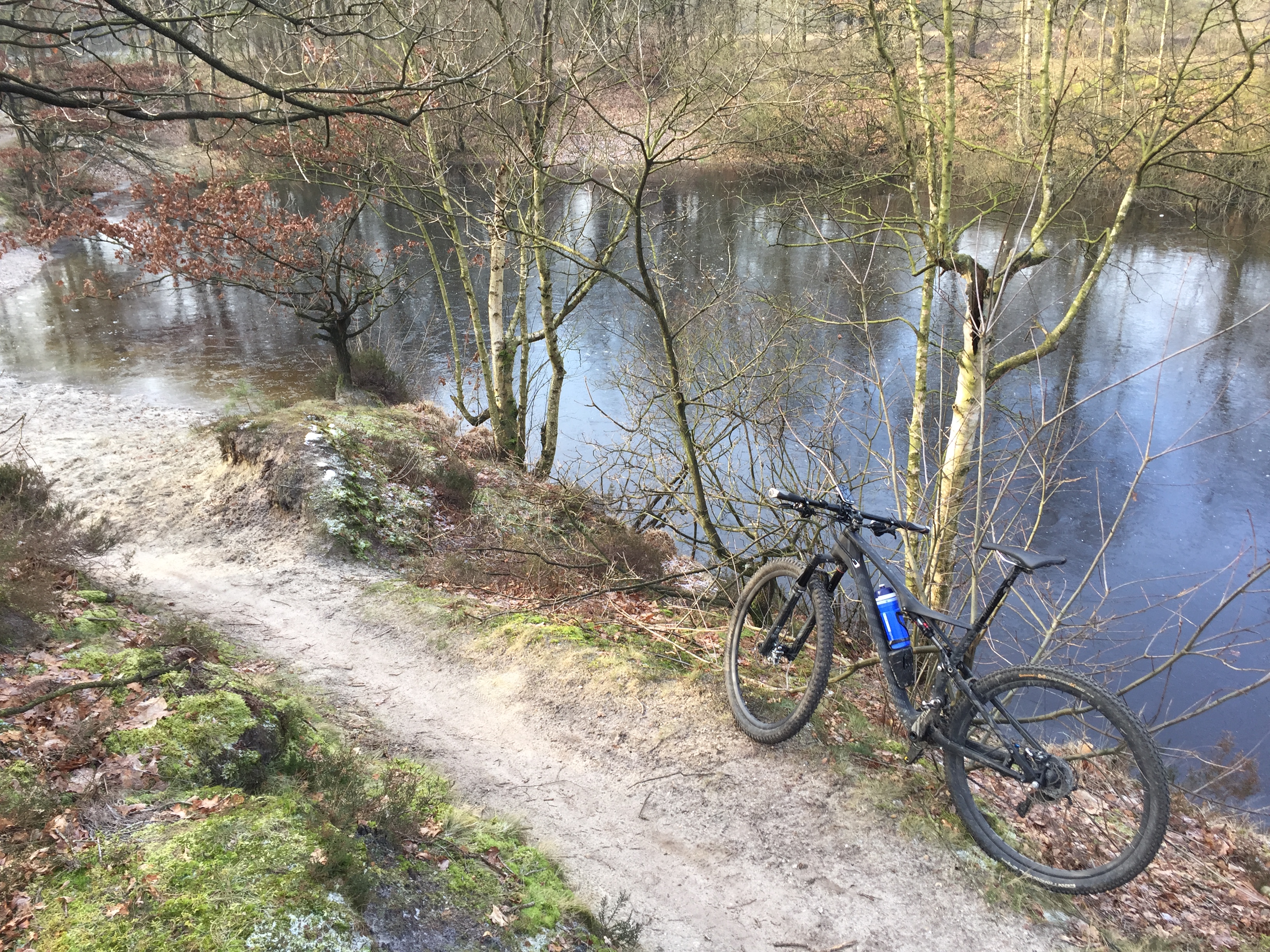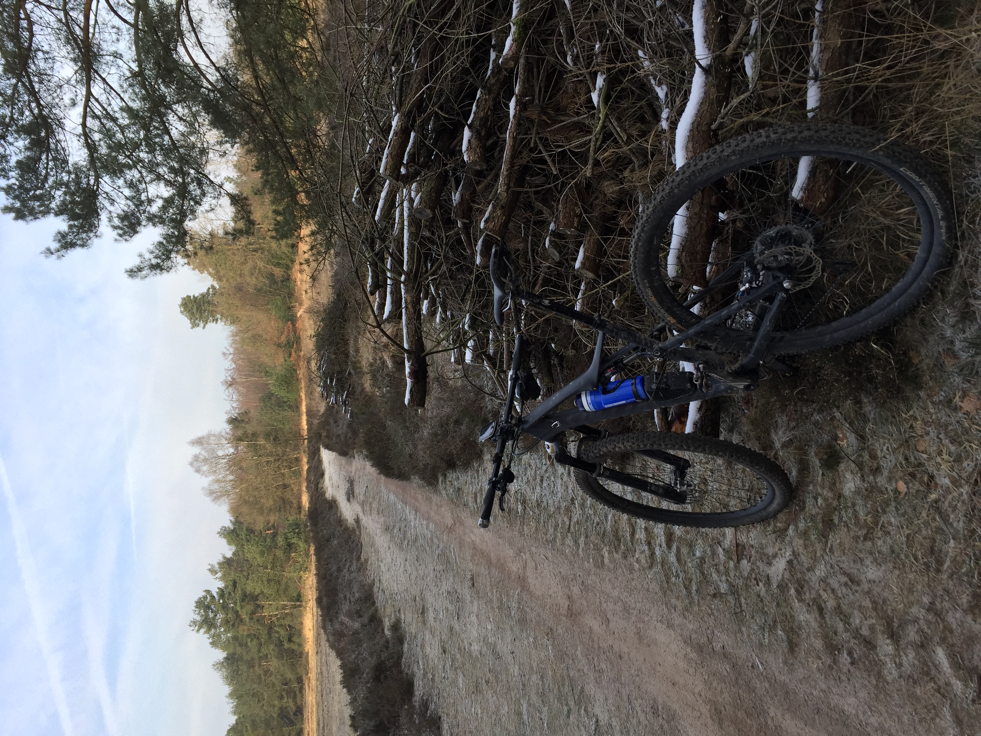 Totaal geen bewolking en niet zo'n harde wind, dus goed uit te houden. Zeker ook in de beschutte stukken in de bossen. In begin wat "ruzie" met wat diepe sporen die nu keihard bevroren waren, maar wel overeind gebleven.