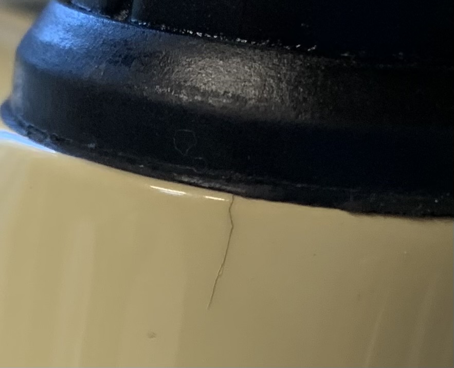 We hebben de inspectie afgerond en daaruit is gebleken dat dit slechts een scheurtje in de lak is. Voor zover we dit met de beschikbare middelen kunnen controleren is het carbon nog intact en de veiligheid van het frame is dan ook niet in geding. Dit kan ontstaan door sterke beweging van de zadelpen, bijvoorbeeld wanneer het zadel niet ontlast wordt bij het rijden over flinke oneffenheden zoals omhooggekomen boomwortels en gaten. Nu de spanning van de lak lager is geworden verwachten we ook niet dat deze schade zich nog zal uitbreiden.