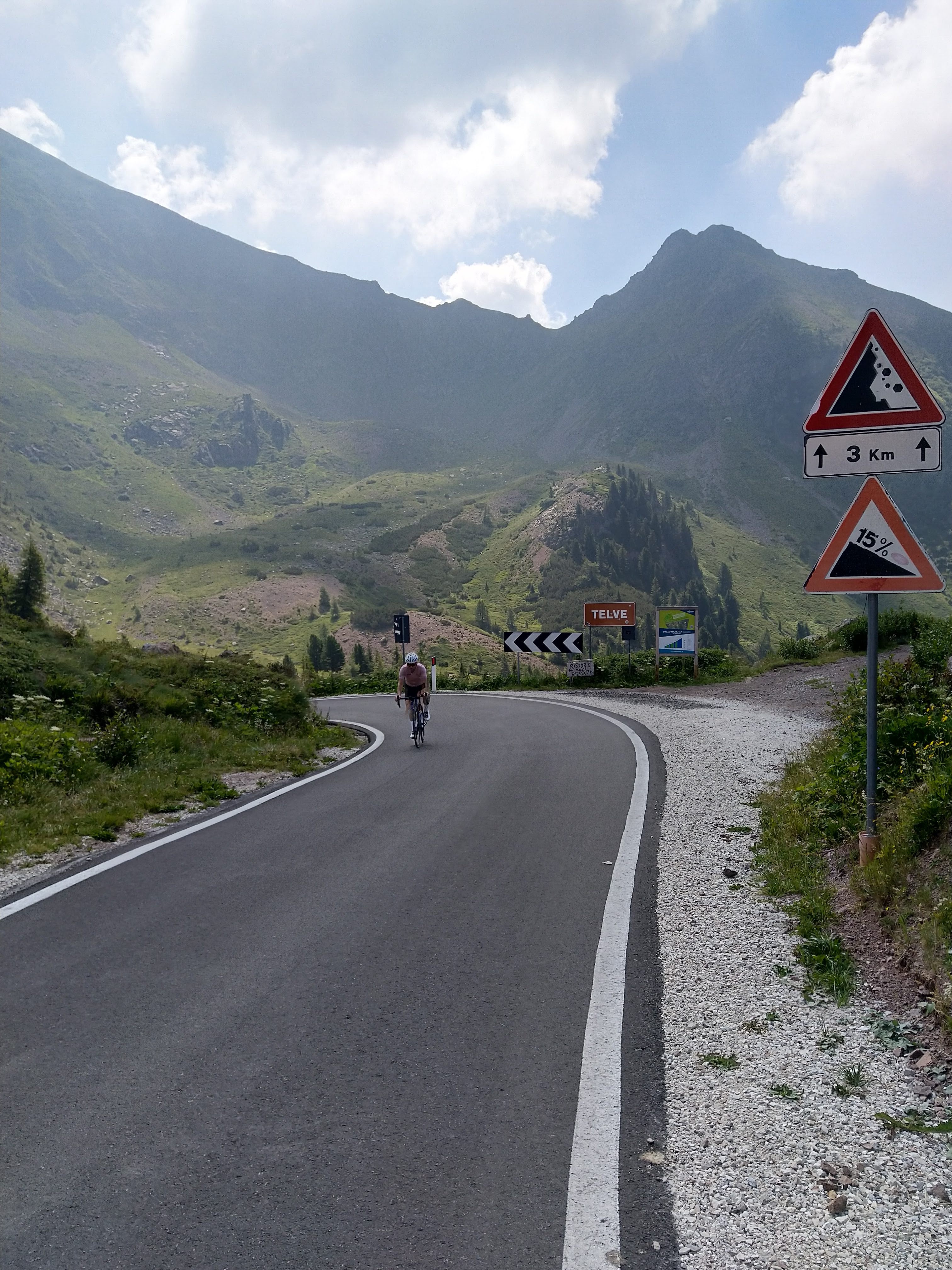 Vandaag de climbpro functie gebruikt bij de beklimming van de Passo Manghen. Het laatste stuk had een groene kleur en zou dus relatief gemakkelijk moeten zijn. Niets was minder waar met stijgingspercentages tot 15%.