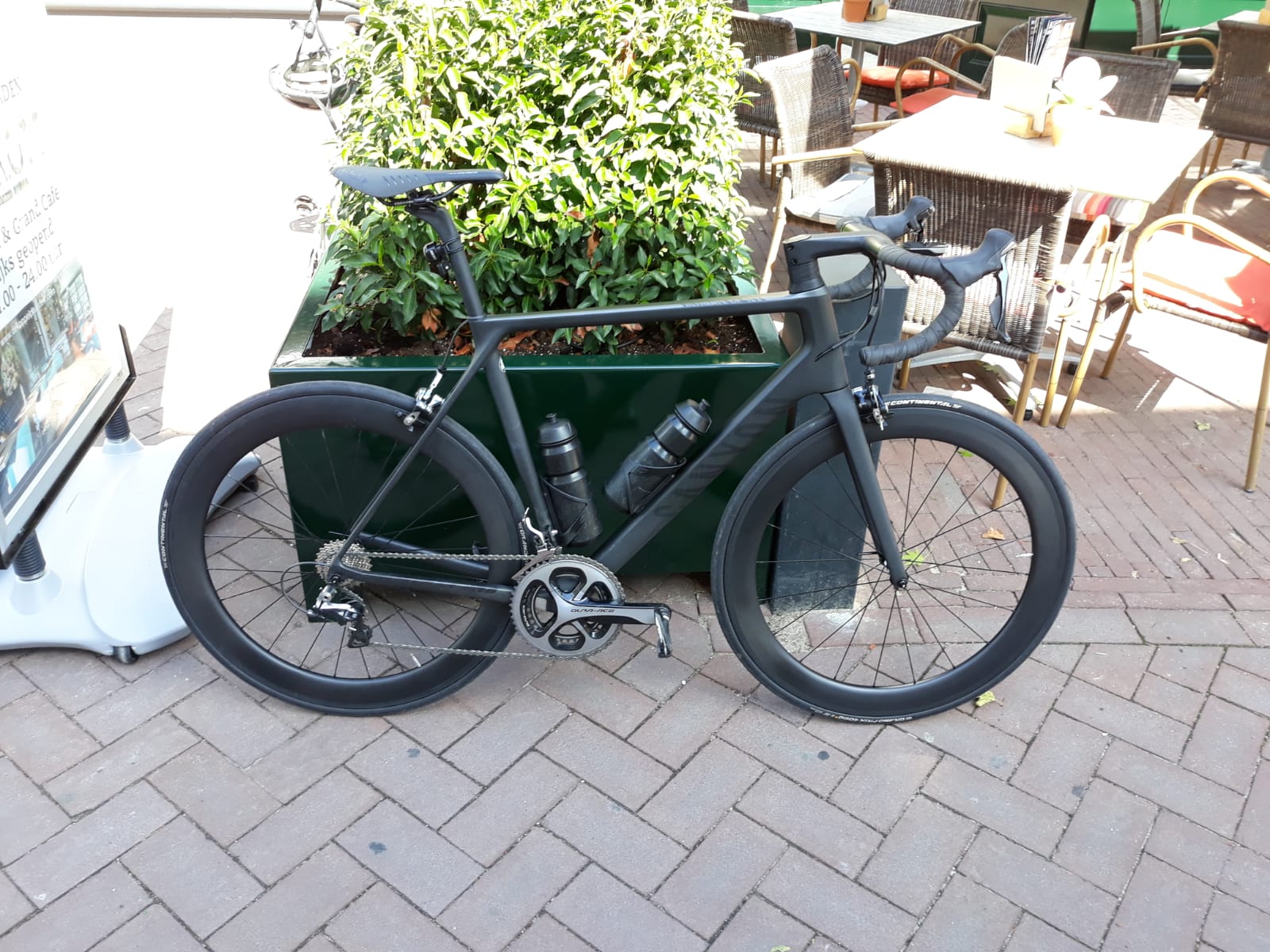 Dit zijn de 38 mm hoge 23 mm brede velgen met een V-profiel. De gemeten breedte is echter 24 mm, binnenmaat is 16C. Conti GP4000's vallen als 27 mm breed. Een standaardventiel is nét lang genoeg bij deze velghoogte.