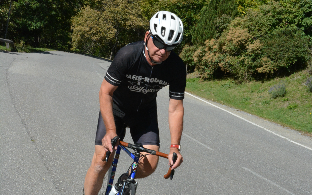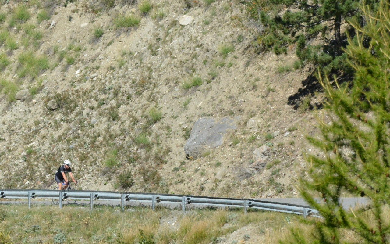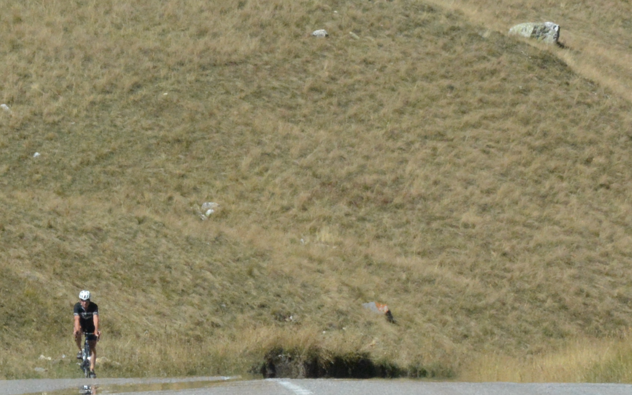 Aan het begin van de Col de Larche uit de auto gesprongen en op de fiets omhoog.