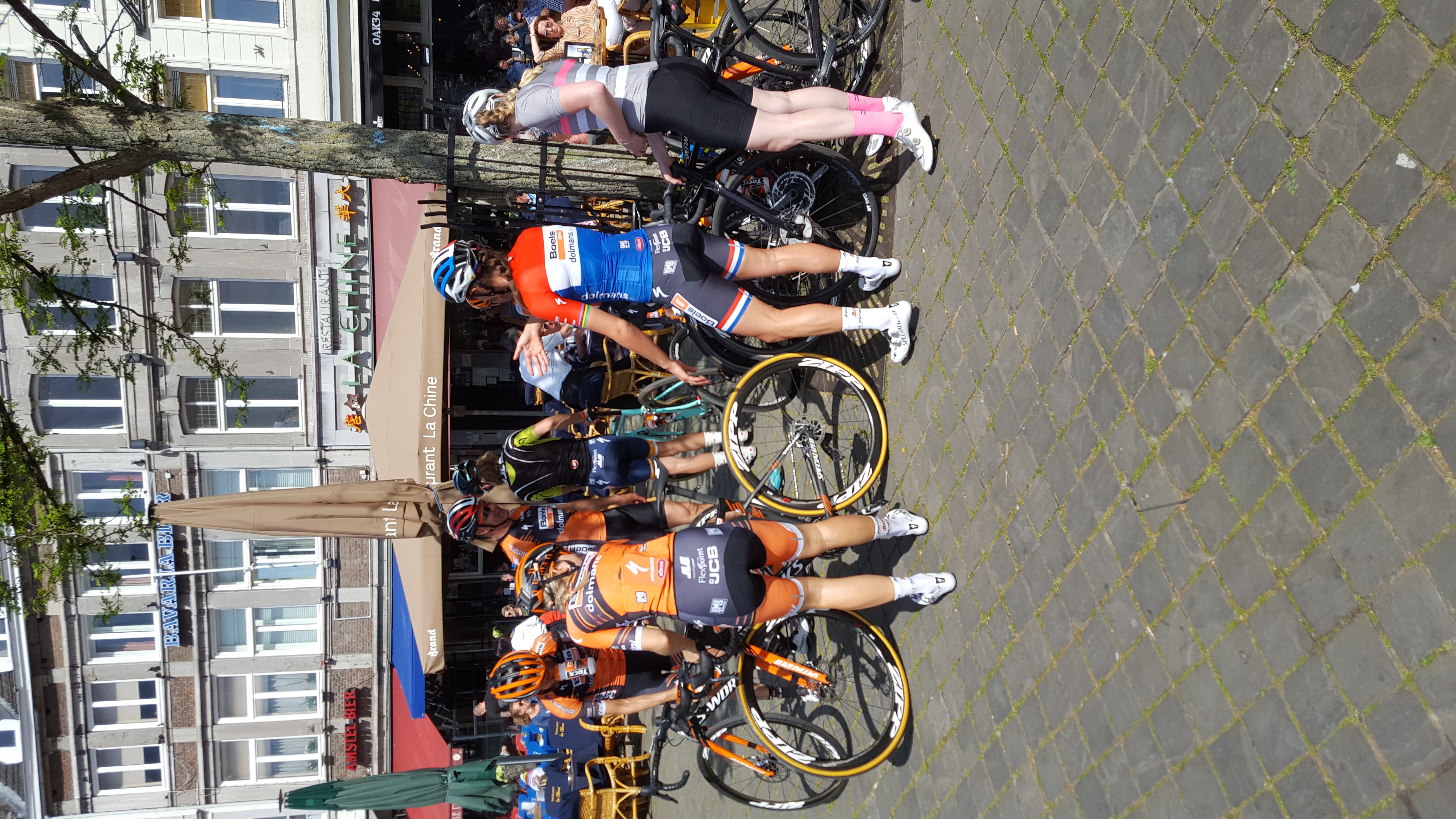 Maar eenmaal voorbij het zwaarste stuk, krijgt een mens opnieuw wat vertrouwen, en knal je verder vooruit. Op naar de laatste helling, de Cauberg. Daar kon iedereen nog eens voluit gaan. Nadien volgde de afdaling van de Geulhemmerweg waar de auto niet veel verder stond te wachten. Na het verfrissen en het inladen van onze fietsen, gingen we, zoals het Belgen beaamt, een frietje eten in Berg en Terblijt.