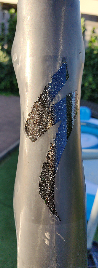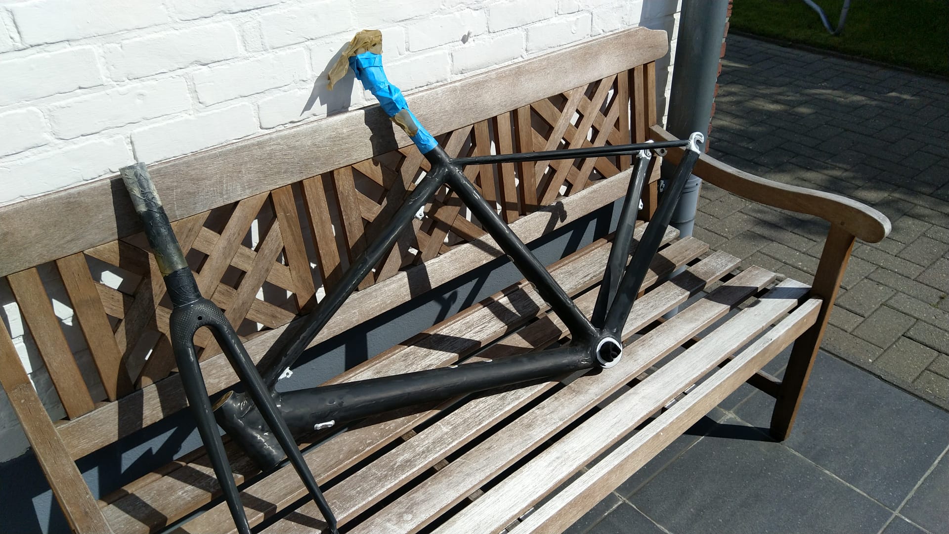 De vork heb ik gespoten. Was vrij aardig gelukt, goed glad ook. Ik had een RAL 9011 besteld. Maar eigenlijk vind ik deze nog te 'zwart'. Ik heb nog niet de matte 2K clearcoat gespoten dus het eindresultaat weet ik nog niet.