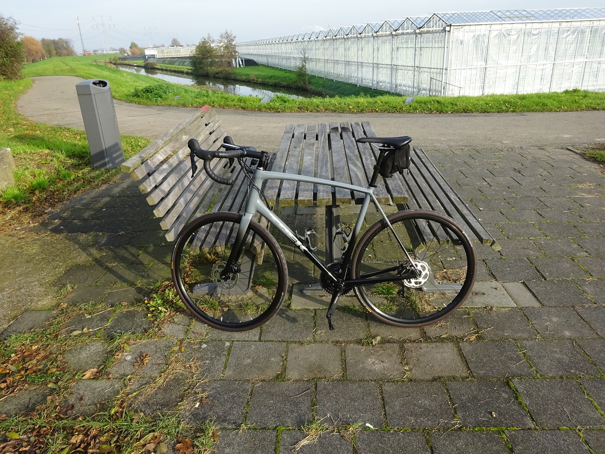 Hij heeft nu een Trek Checkpoint "met klein krasje"