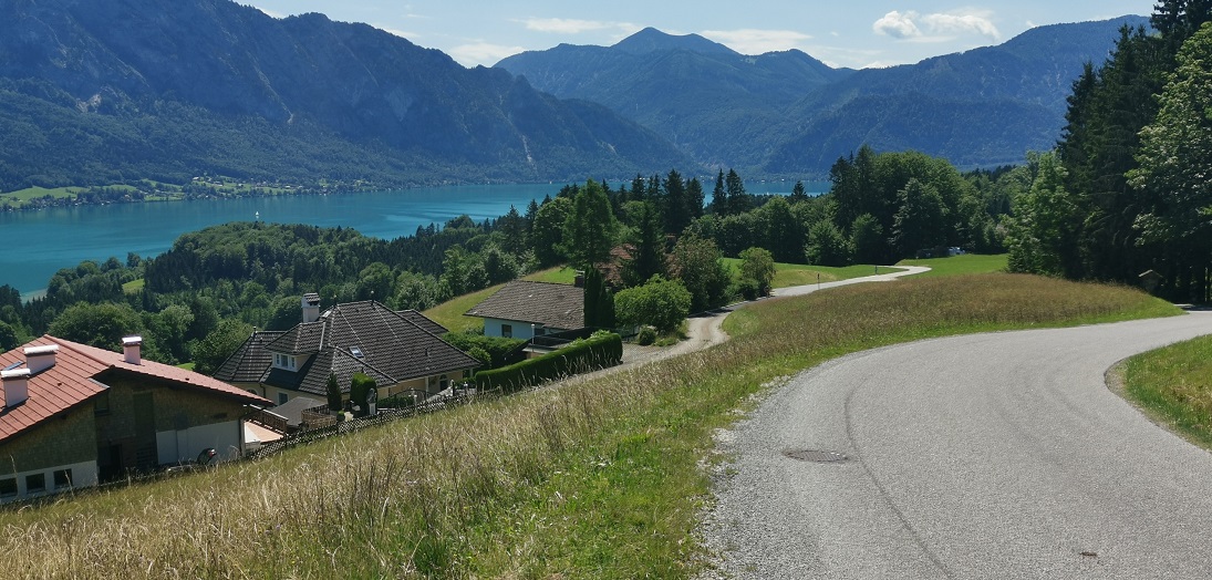De weg terug vanaf Bad Ischl was (voor mij) episch, je rijdt daar over de oude provinciale weg, vanuit de tijd dat er nog geen tunnels door de berg waren. Dat heb ik nog wel meegemaakt toen we hier de eerste keer op vakantie kwamen. Je rijdt dan vlak langs het meer en hebt de oude tweebaans weg bijna voor jezelf. Gemotoriseerd verkeer mag er niet komen en de weg dient al toerit voor de brandweer, dus in prima staat.