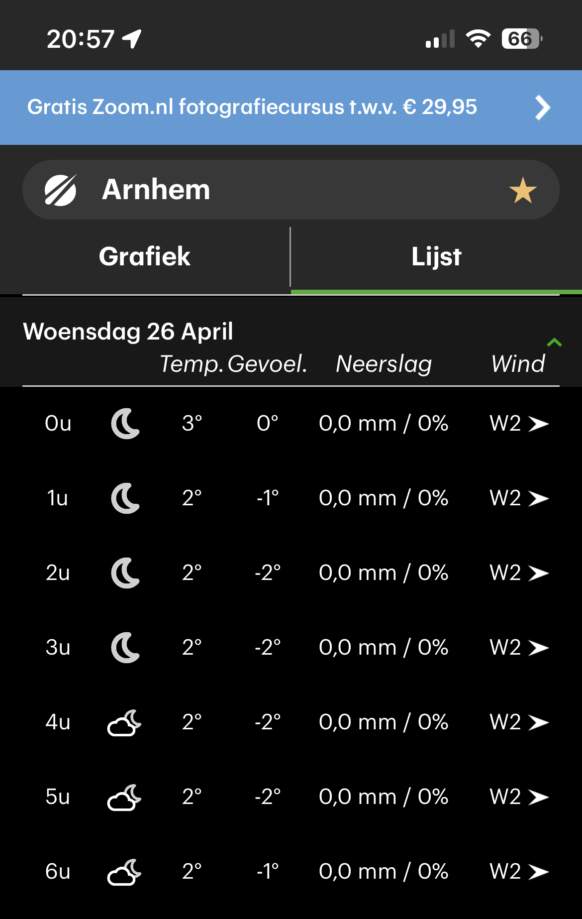 Vanmorgen prima. Net geen twee uurtjes in korte broek. Volgens de temperatuur kon het niet, maar dankzij de zon ging het prima.
