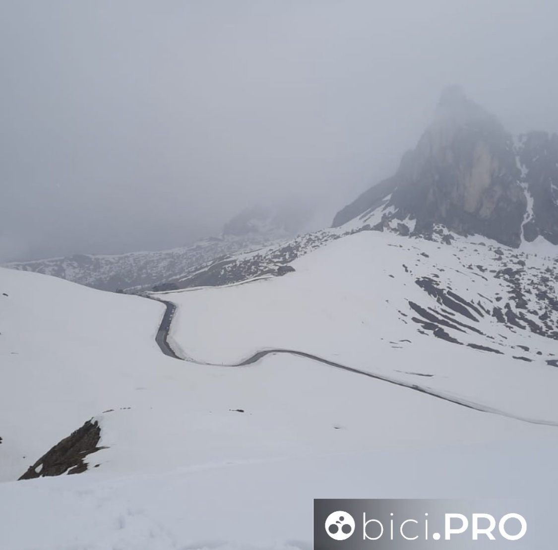 op de Giau sneeuwt het nu ook al.... Ik vraag me af of ze die nog wel over durven als het blijft sneeuwen.