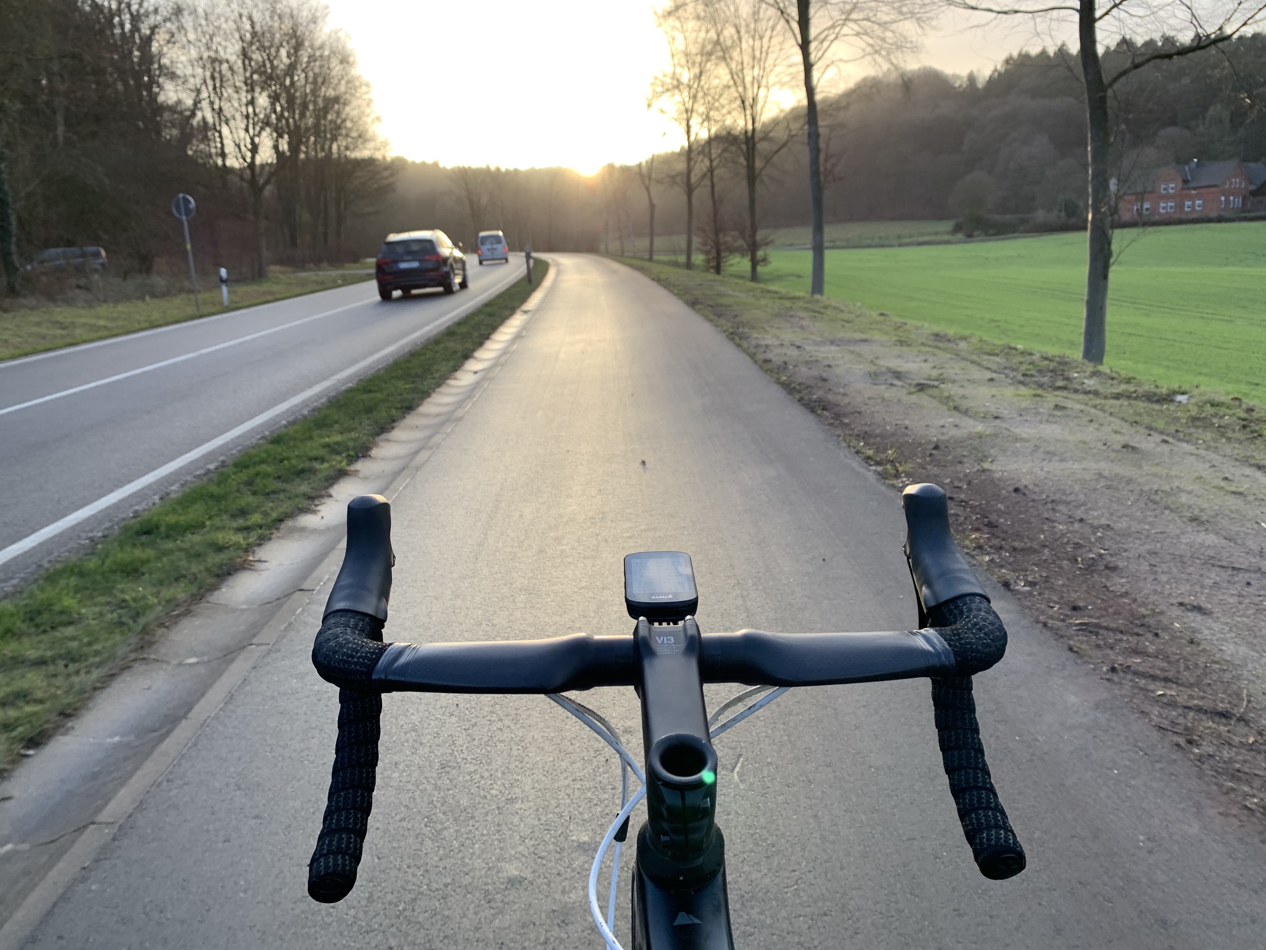 O ja, de laatste klim was het wegdek droog en vlak bij de auto begon de zon te schijnen (laatste 5 min). En Climbpro op de Garmin 530 werkte ook wel aardig, 1 missende klim (door het bos achter Bad Iburg), en van 1 klim gaf ie aan dat ik al boven was terwijl ik nog 200m verder moest tot de top