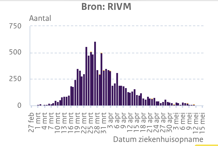 Dit is de meest actuele grafiek met ziekenhuisopnames en de sterfgevallen.