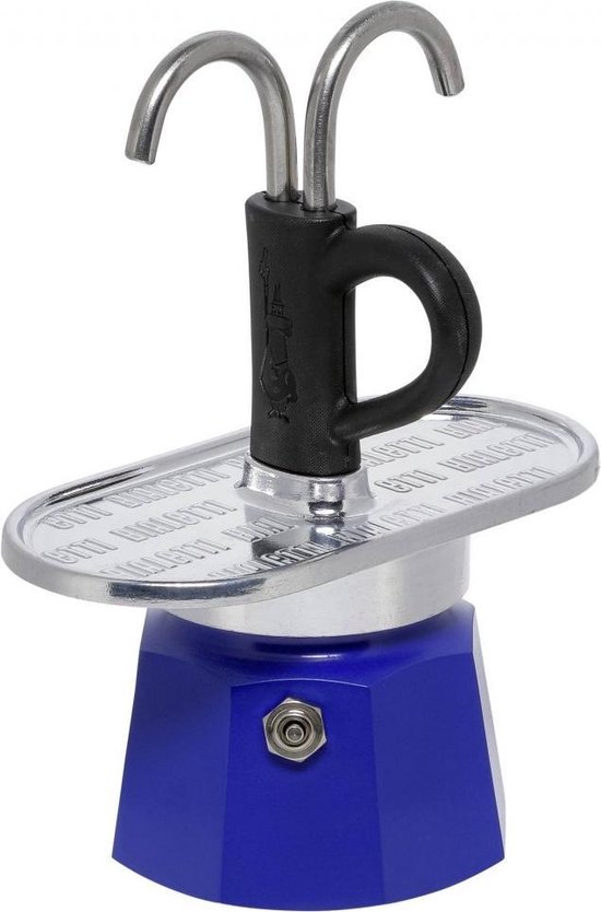 Enorme schouw boven de twee fornuizen met op de rand................misschien wel 40 Bialetti's............ Van ieniemienie tot geschikt voor een ploeg die nog compleet in de Giro rijdt