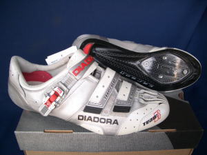 Dat is de Diadora Team Racer; de ProRacer heeft, denk ik, dezelfde zool, maar andere slutingen. Het voornaamste probleem is onvoldoende steun aan de hiel (voelt los aan) en een veel te smalle "toe-box", waardoor de tenen pijn doen bij het duwen an als het ware samen geperst worden .