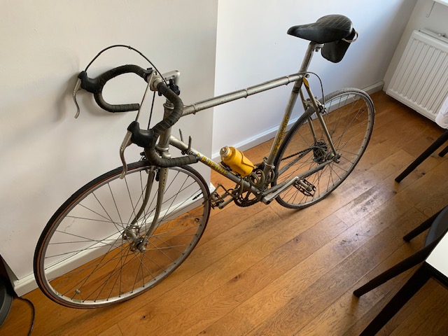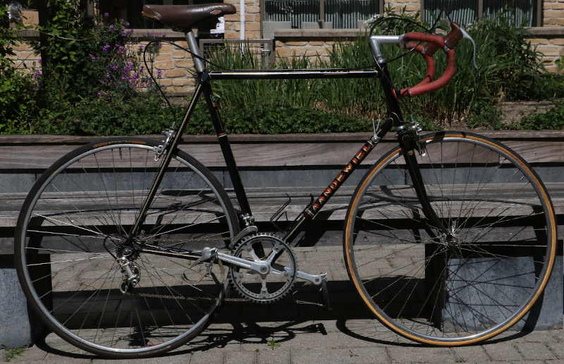 Ik vond deze laatst in mijn schuur... Ik ben geen wielrenner, maar wist dat het een luxe fiets was. Op de remhendels na origineel, zover ik weet.