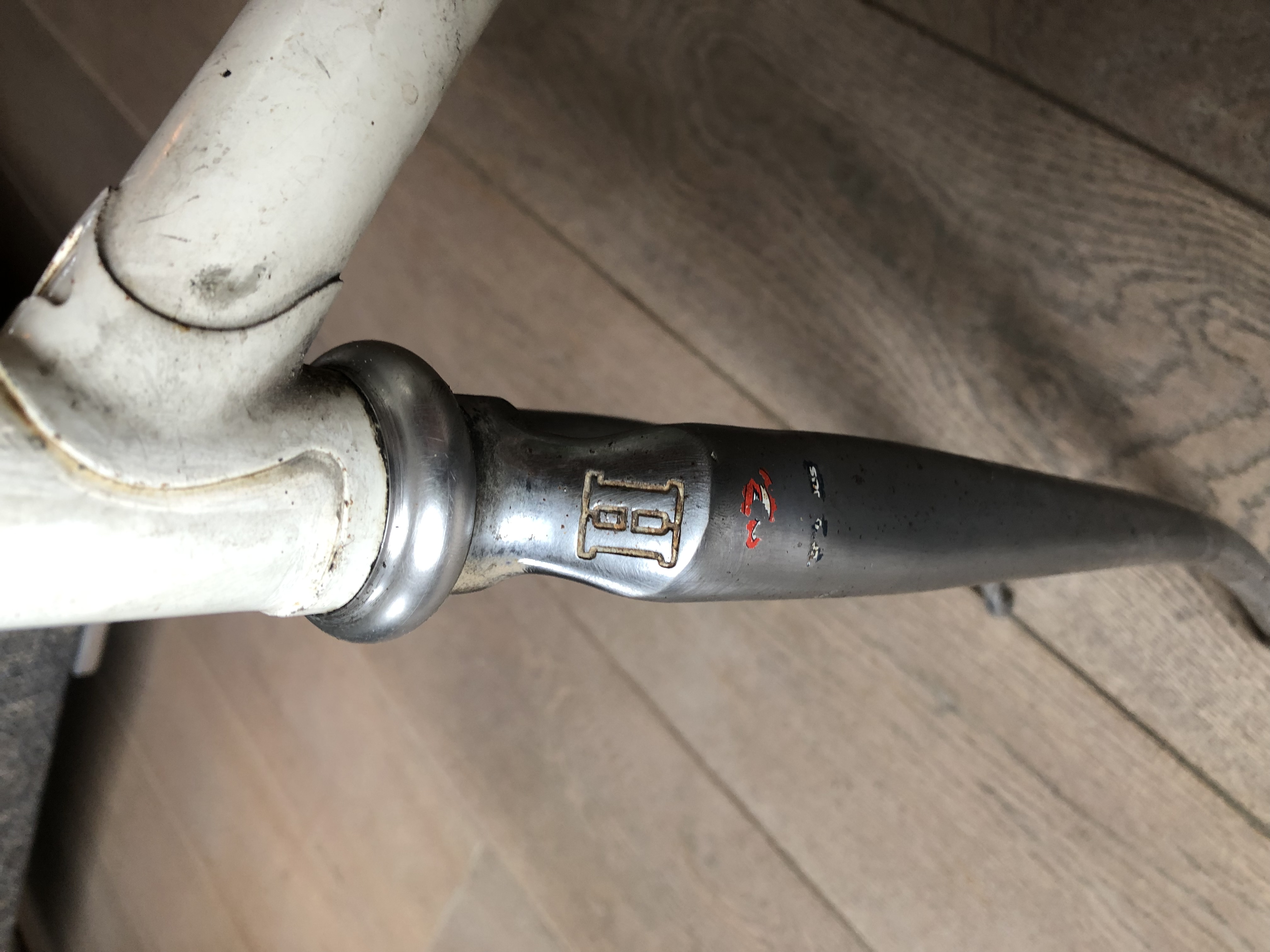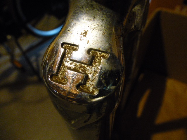 Eerder deze week kreeg ik een frame en voorvork zonder logo's. In enkele lugs op het frame is een uitgesneden D te lezen en op de vorkkroon een H. Zie bijgaande foto's.