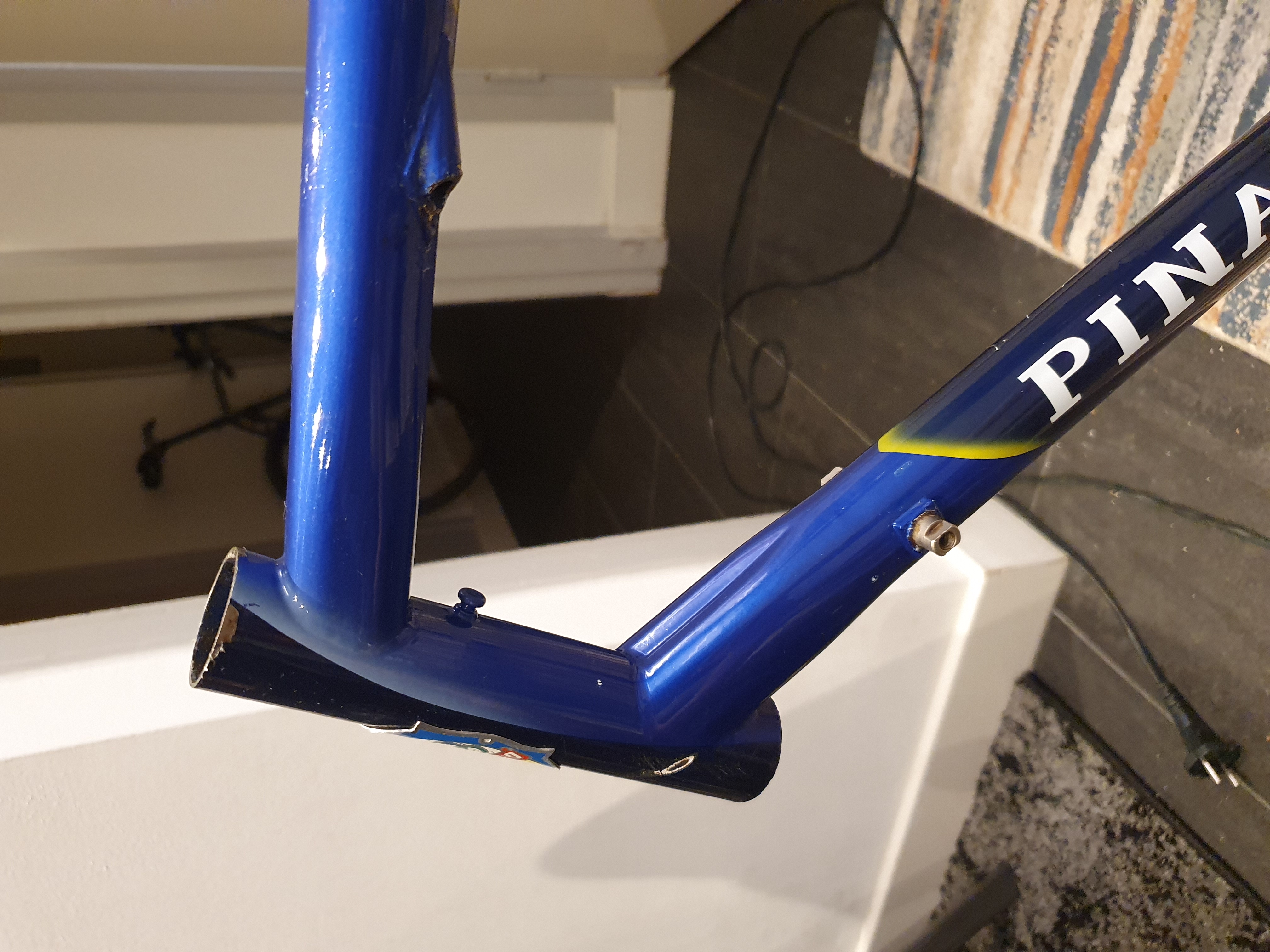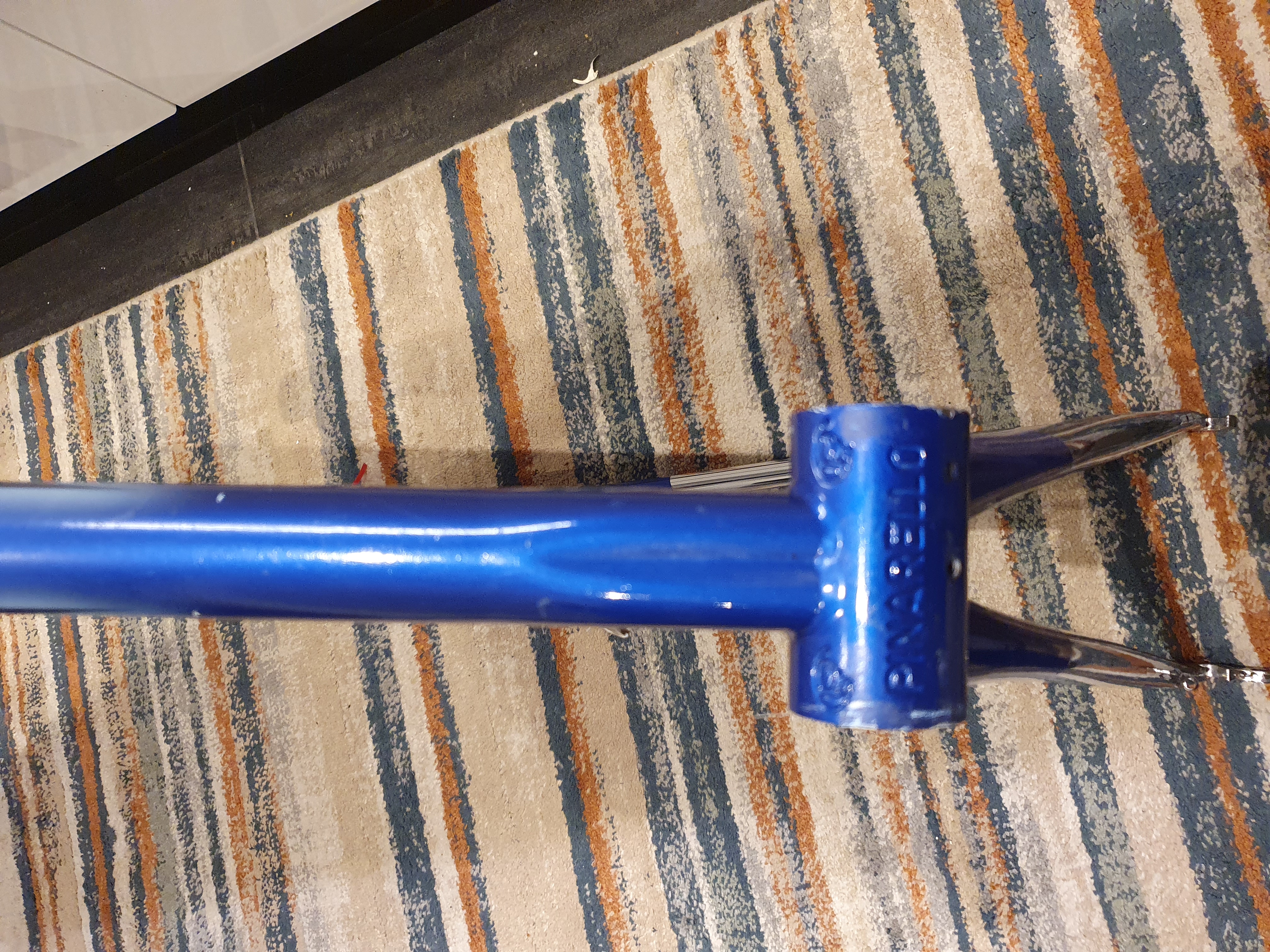 Van dit frame (52 cm) en deze voorvork zal ik afscheid nemen, want ik ga voorlopig meer dan genoeg lol beleven aan het opknappen van twee andere (vrijwel) complete oldtimers, een Lapebie van eind jaren '70/ begin jaren '80 en een Huissoon, waarschijnlijk van wat jonger datum.