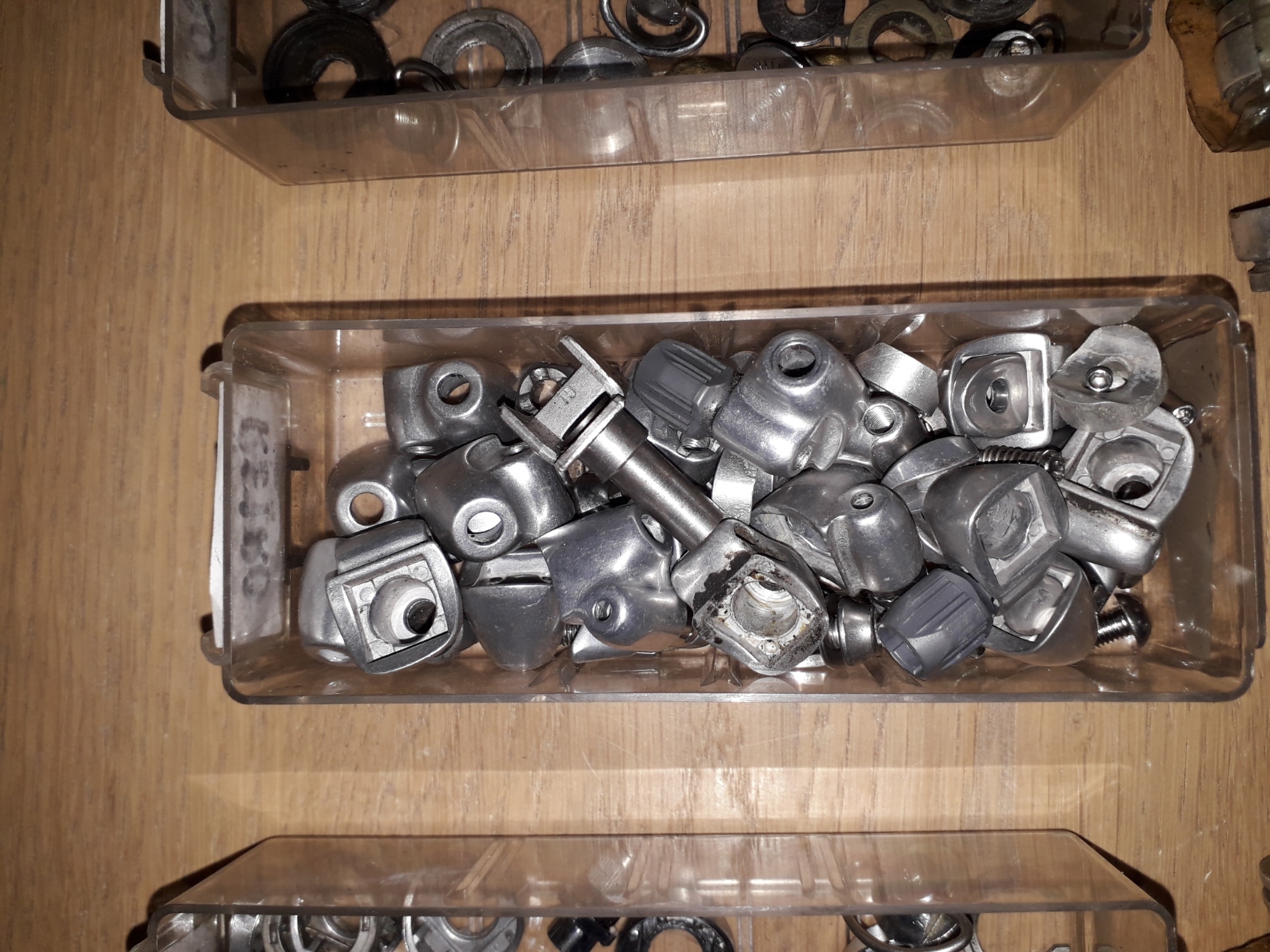 De nokjes op het frame uittappen naar M5 doe ik liever niet, zodat ik de originele buiscommandeurs ooit nog terug kan zetten. Weet iemand waar ik zo'n setje M4.5 boutjes voor geïndexeerde buiscommandeurs kan scoren? Of heeft iemand toevallig nog iets liggen?