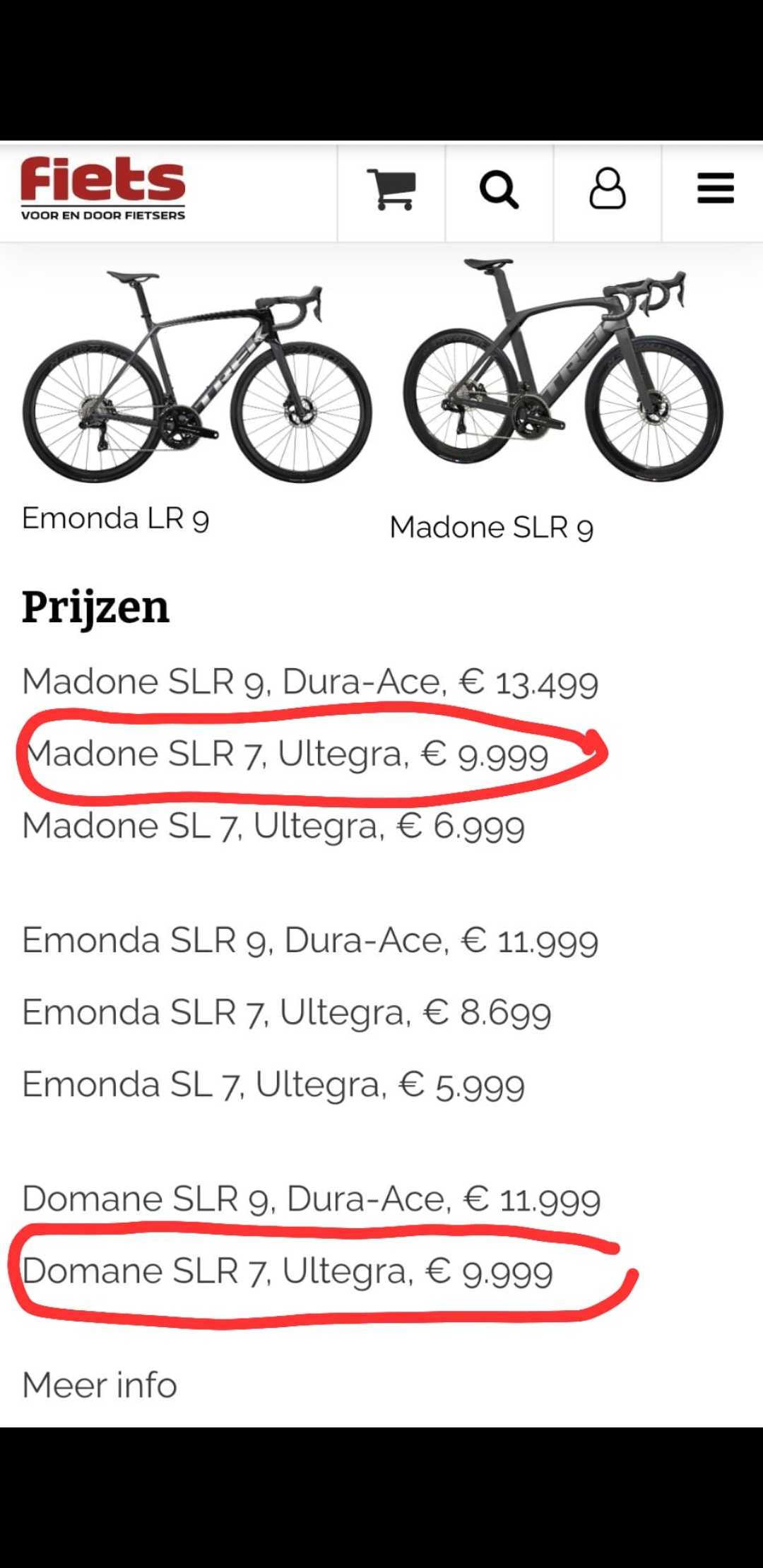 Maar dat is appels met peren vergelijken. Deze fietsen zijn de toprange qua frame, afgemonteerd met di2 en veel betere wielen.