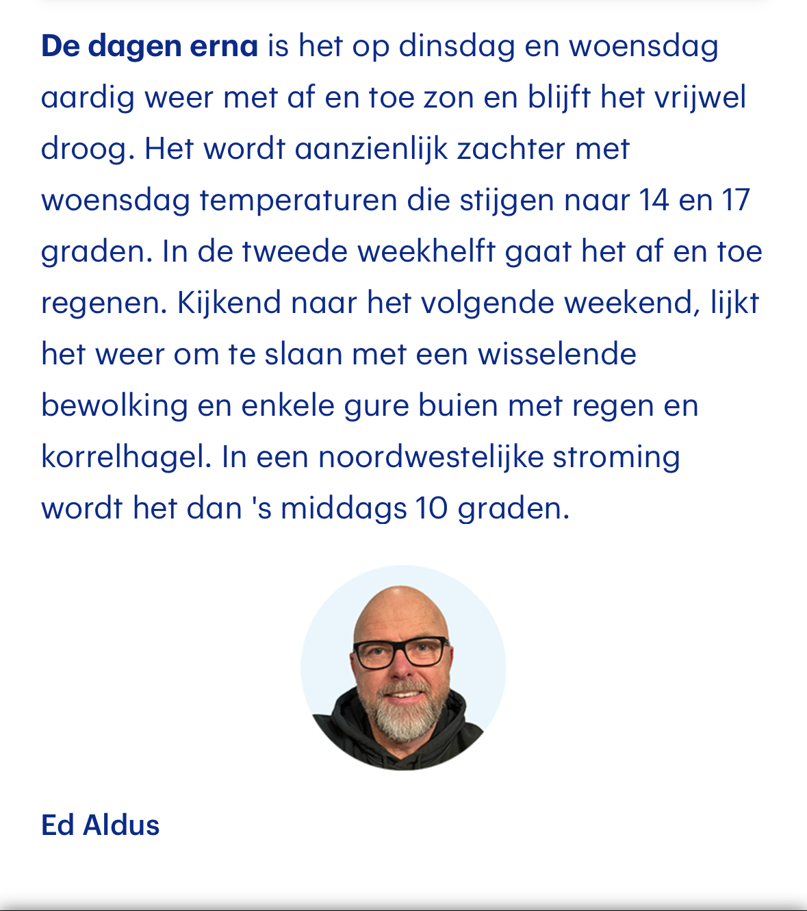 Op zich is het voor maart heel normaal weer, die wisselingen, alleen na die lange periode met regen en kutweer snak ik toch wel naar iets stabieler voorjaarsweer en paar mooie weekenddagen.