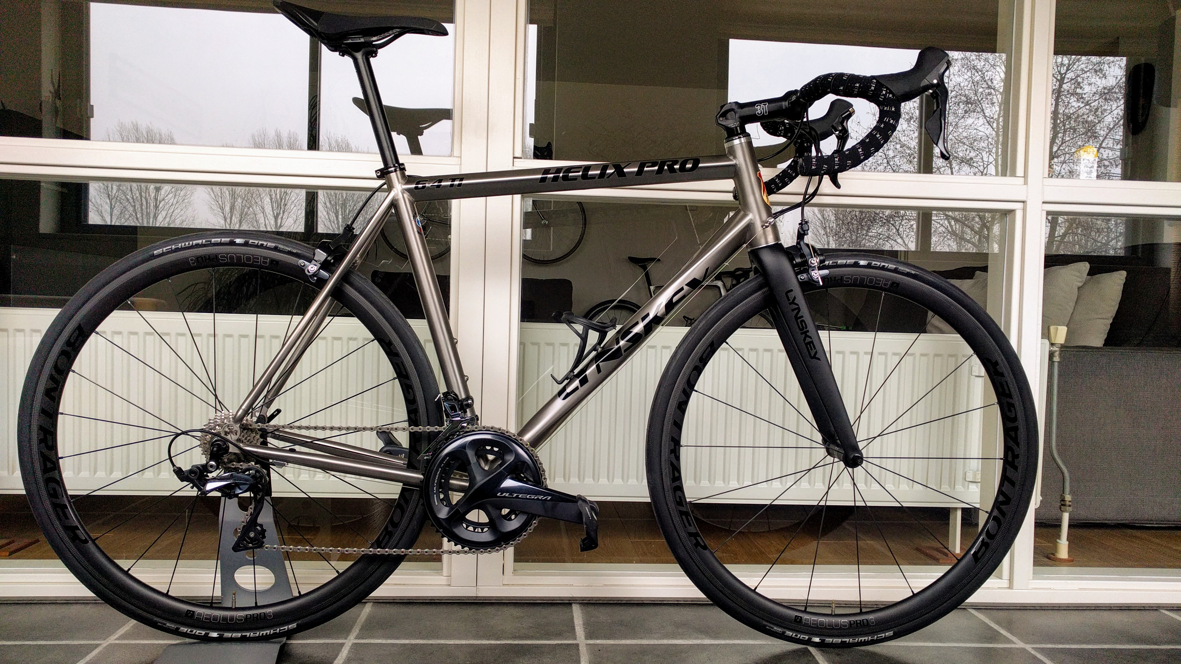 Sinds gisteren ook de trotse eigenaar van een titanium fiets, een Guillem Major. Ben zeer onder de indruk van deze fiets