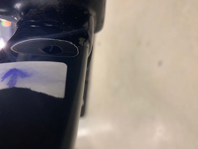 ik denk dat ik ook alweet hoe het komt. sprintte een keer de Hollandse brug op en toen liep mijn band volledig tegen mijn vork aan. Ik had het wiel er niet goed in gezet en hij was los gekomen en scheef komen te zitten. Dat is dus een dure grap geweest, blijkt dan achteraf. Dat je zo snel een gat in het carbon krijgt sta ik wel van te kijken.