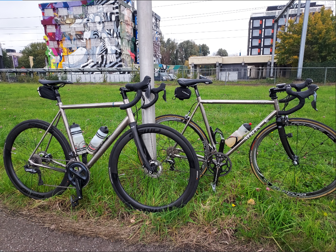 Mijn maatje had hiervoor zijn titanium fiets tevoorschijn gehaald.