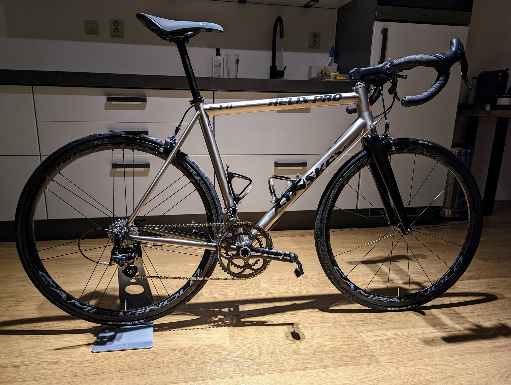 Ook ik ben een liefhebber van titanium en heb er door de jaren heen een aantal in bezit gehad. De meesten daarvan komen ook bij van Tuyl (cc5311) vandaan, eerst als vt en later werd het Gilbertson. Ook heb ik een tweetal Lynskey frames gekocht waarvan ik er op eentje nog altijd met veel plezier rijd.