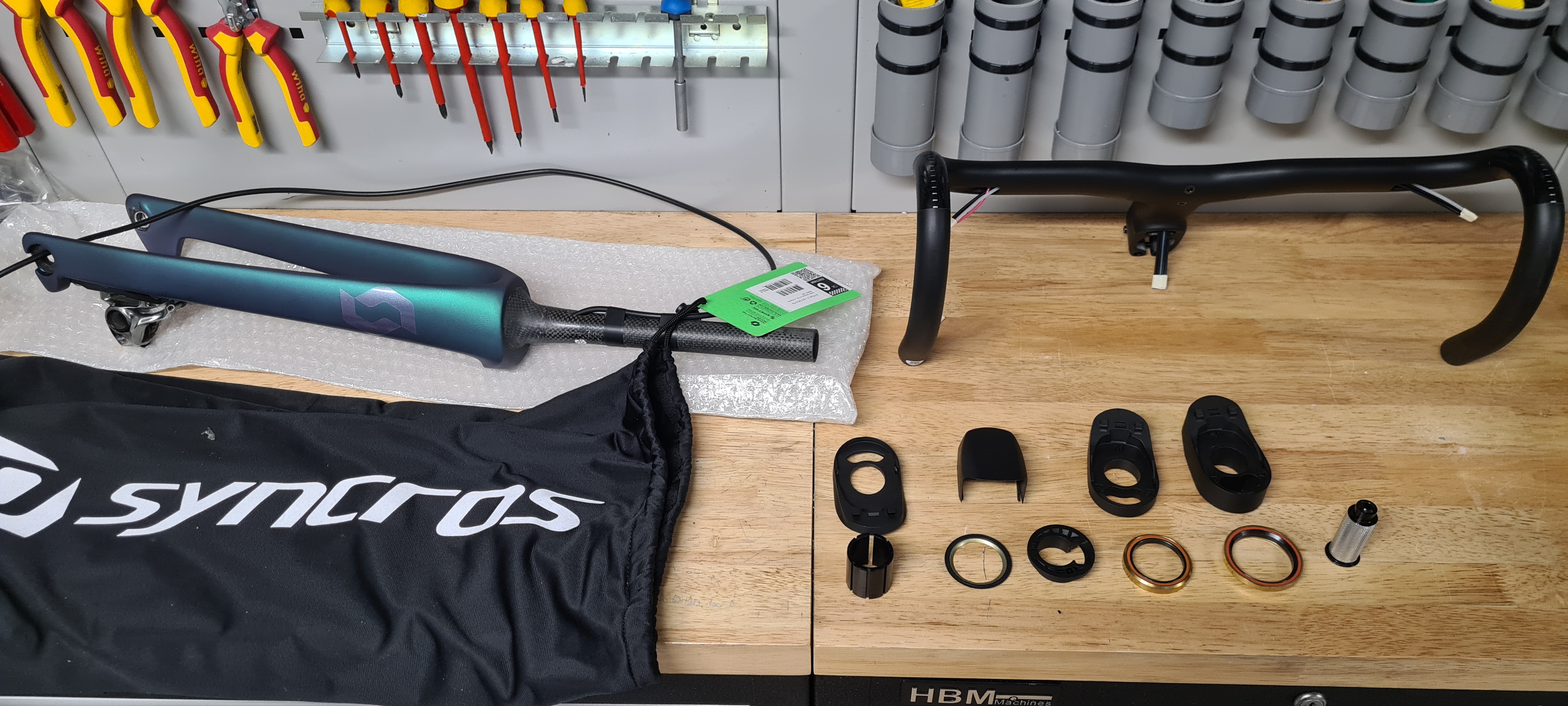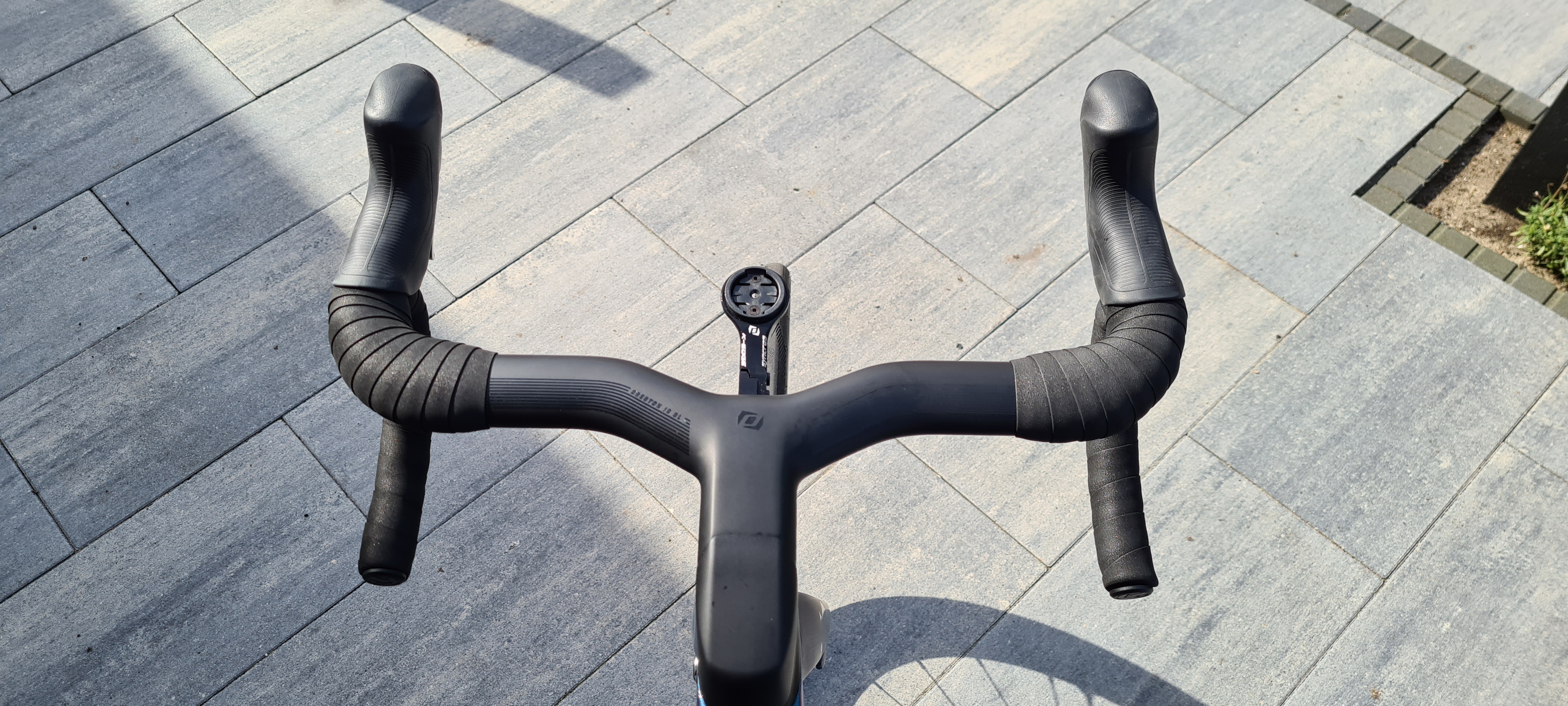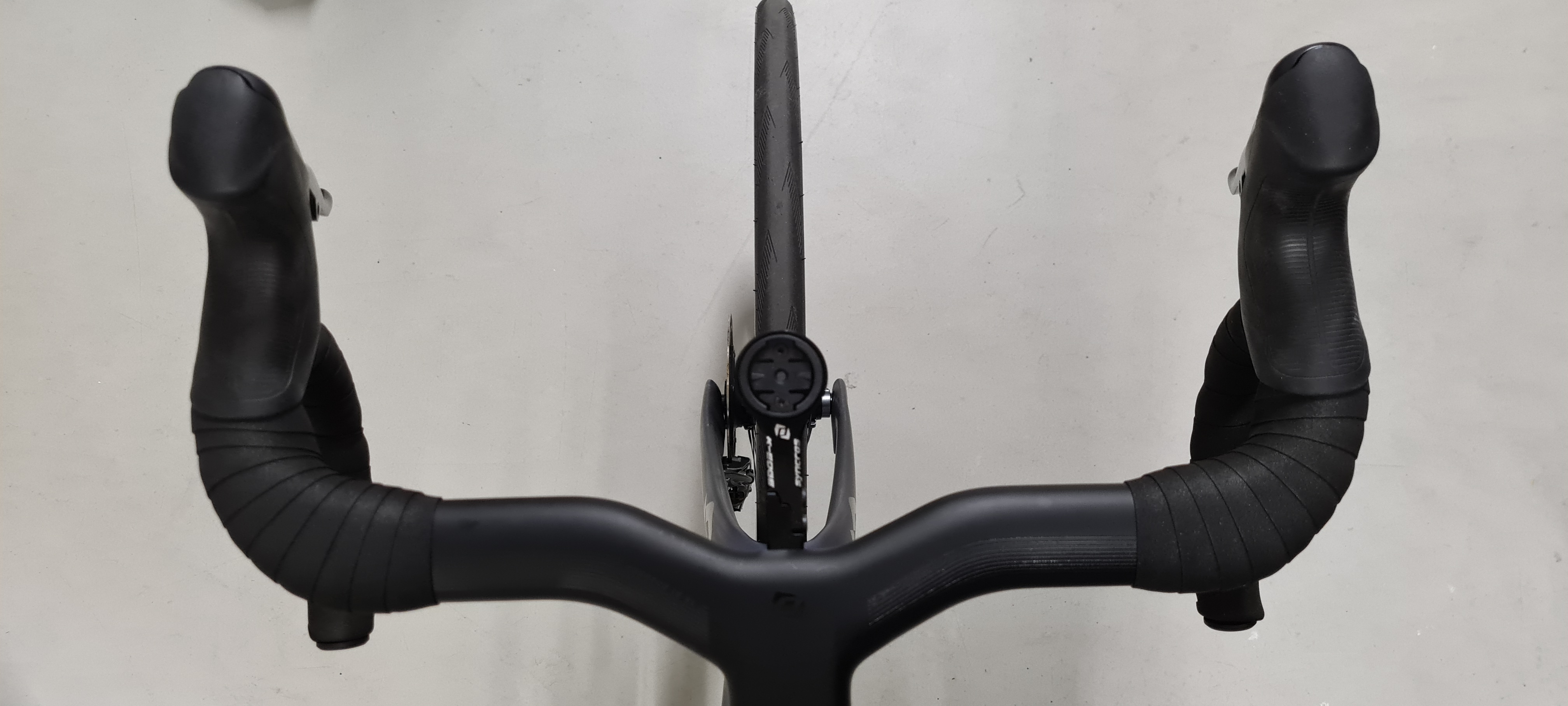Het stuurlint heb ik vanaf de bovenkant gewikkeld, vind het bij een aero stuur mooier zonder tape, even afwachten of het in de praktijk goed werkt.