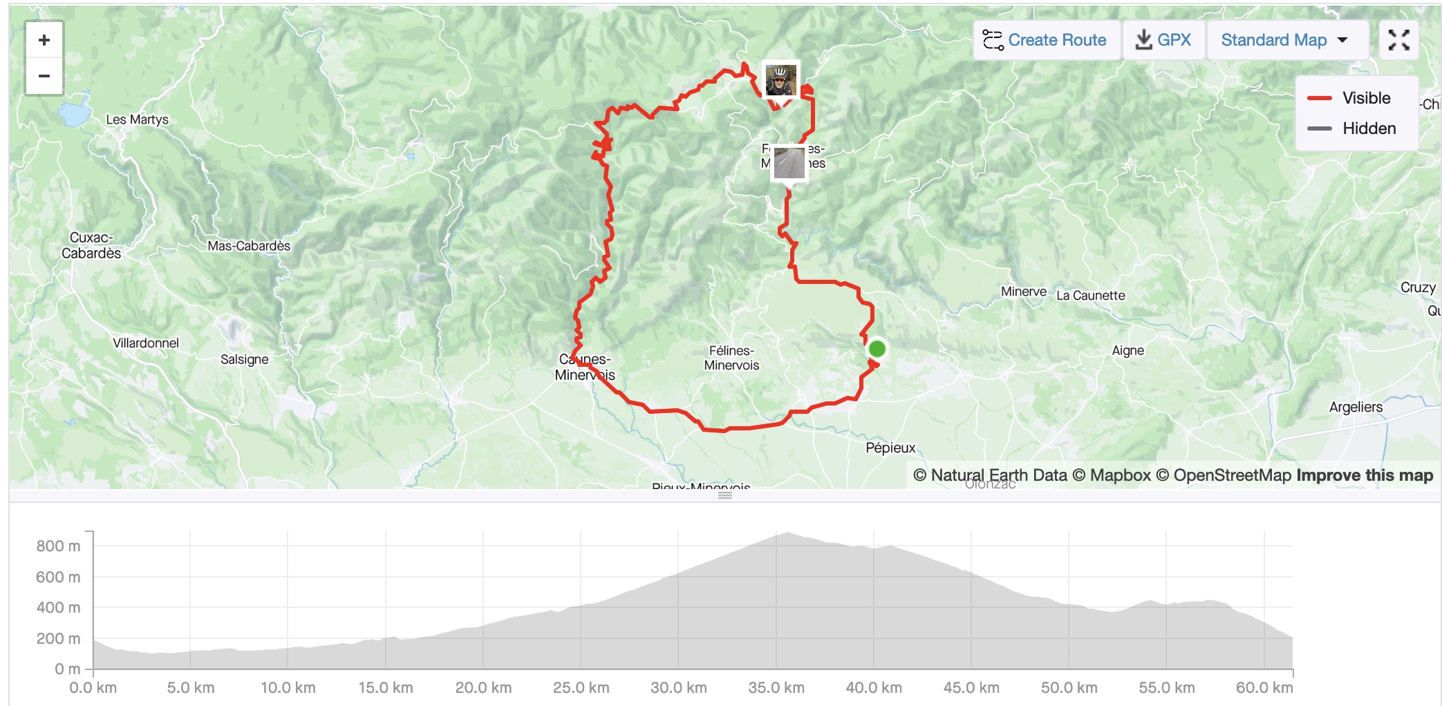 Gisteren een iets langer rondje hier in Zuid Frankrijk gedaan, glooiend terrein in het begin, daarna de echte klim (27km lang bergop !!) met percentages tussen de 2-8%. In de vallei bewolkt, maar richting de top kwam de zon er goed door. De Castelli Alpha RoS 2 jack aan, alleen een ondershirt zonder mouwen eronder, zodra de zon erdoor kwam, jack open voor koeling bergop. Was toch wel een heel eind zo'n lange klim (ondanks dat het niet echt steil was). Meteen de Bryton S800 goed kunnen testen met de Climb functie, die is iets anders als op de Karoo2. Op de Bryton zie je niet de HELE klim maar het deel (denk 3-5km) waar je op aan het fietsen bent en dat past zich dan aan. En je bent enigzins vrij om de velden onder het hoogteprofiel aan te passen (Lap Avg Pwr en Lap HR %MHR heb ik erop staan, druk onderaan de klim op LAP).