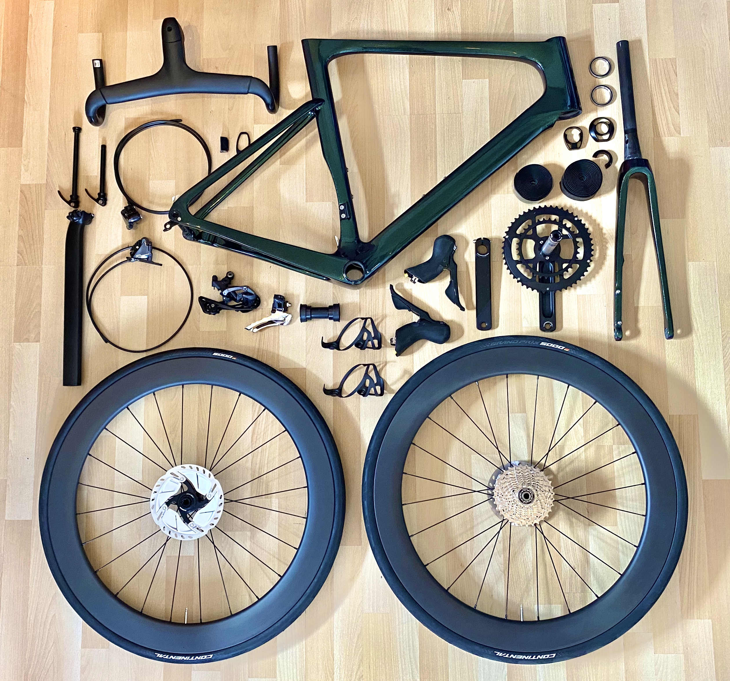 Nou nog maar een post over een Workswell 268 dan maar! Ik was op zoek naar een betaalbaar alternatief voor een carbon aero fiets met discs, en via dit forum kom je dan al vrij snel uit bij de Workswell 268. Ik heb toen een paar maanden geleden de knoop doorgehakt en er een besteld in maat 58, glossy chameleon green met matzwart stuur en zadelpen. Dit was ongeveer de timeline: