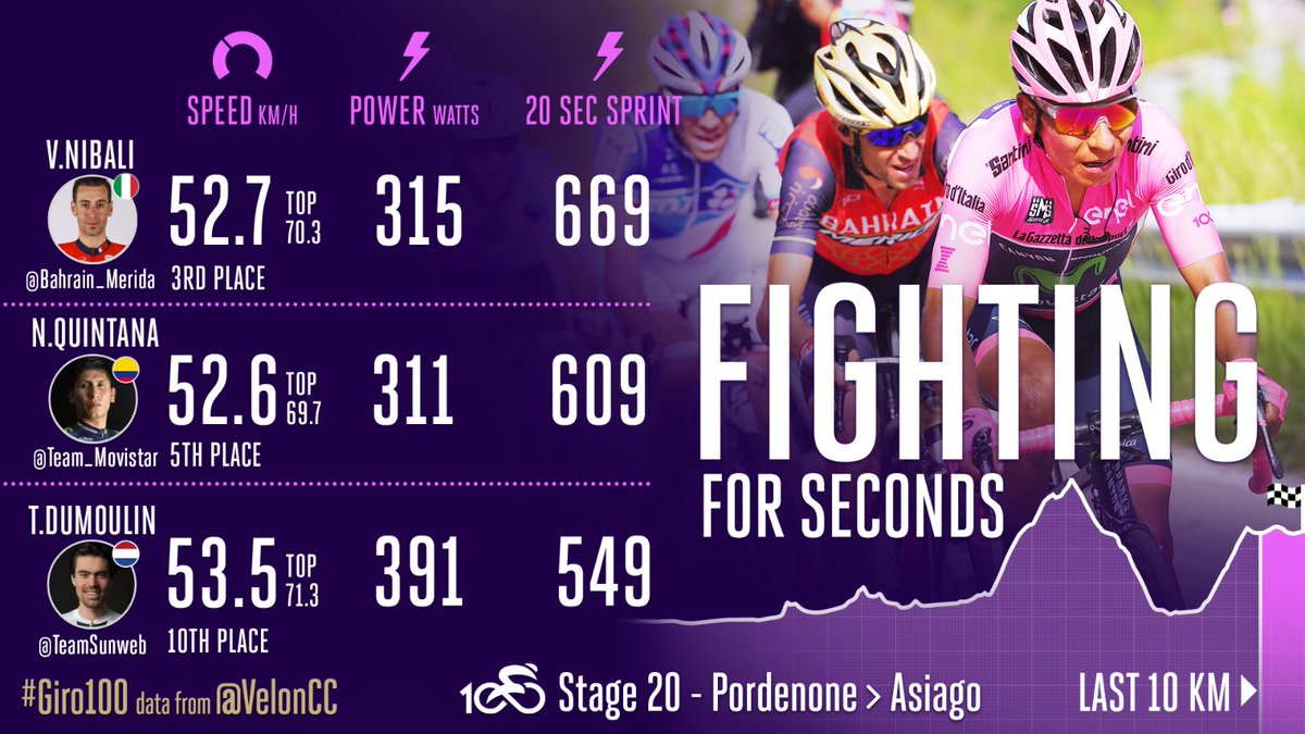 Dumoulin heeft 53 seconden achterstand op Quintana dus ik weet niet hoe je aan die 2,87 sec/km komt want dat zou inhouden dat Dumoulin 30*2,87=86 seconden op Quintana pakt morgen hetgeen meer dan genoeg is.