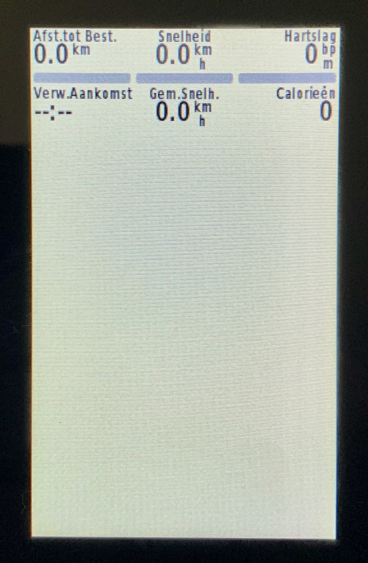 Moest ook een paar keer opnieuw installeren en toen stonden de velden er op. ( Het was weer echt ICT gedoe. Goed lezen etc.) Inderdaad wel erg klein, zeker voor een oude man, maar met schermlicht op 70% lukt het mij net. Wat ik leuk vind is dat de gekleurde balk van kleur veranderd op grond van je ingestelde hartslagzones.