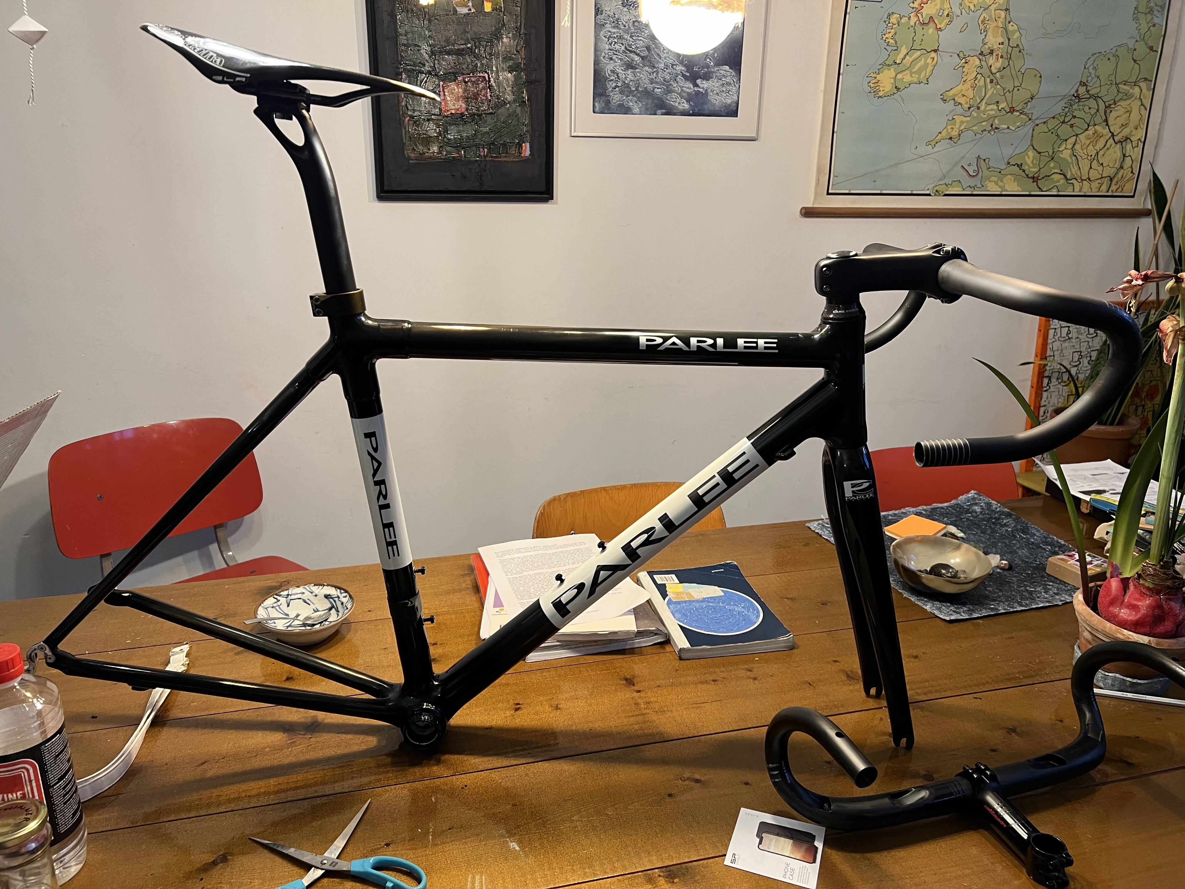 En voor diegenen die de stuurpendiscussie willen voeren: de Parlee stuurpen en het stuur gaan eraf. M’n oude vertrouwde Superleggera/Superleggero komt erop.