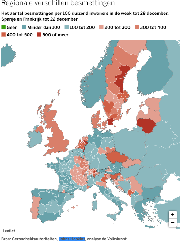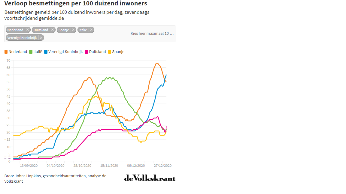 Als je kijkt naar het aantal besmettingen per 100,.000 inwoners dan doet Nederland het niet goed.