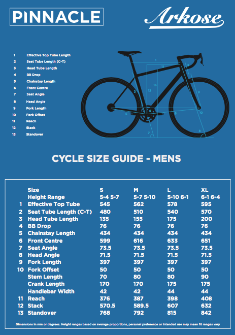 Bij de M zijn de verhoudingen niet helemaal zoals bedoeld bij de Arkose en bij de L is de stack wel erg hoog zonder de mogelijkheid om de reach wat terug te brengen. Ik zou een aankoop met zoveel twijfel over de maat niet zomaar bij een buitenlandse webshop doen. Het lijkt mij beter als je een proefrit kunt maken.