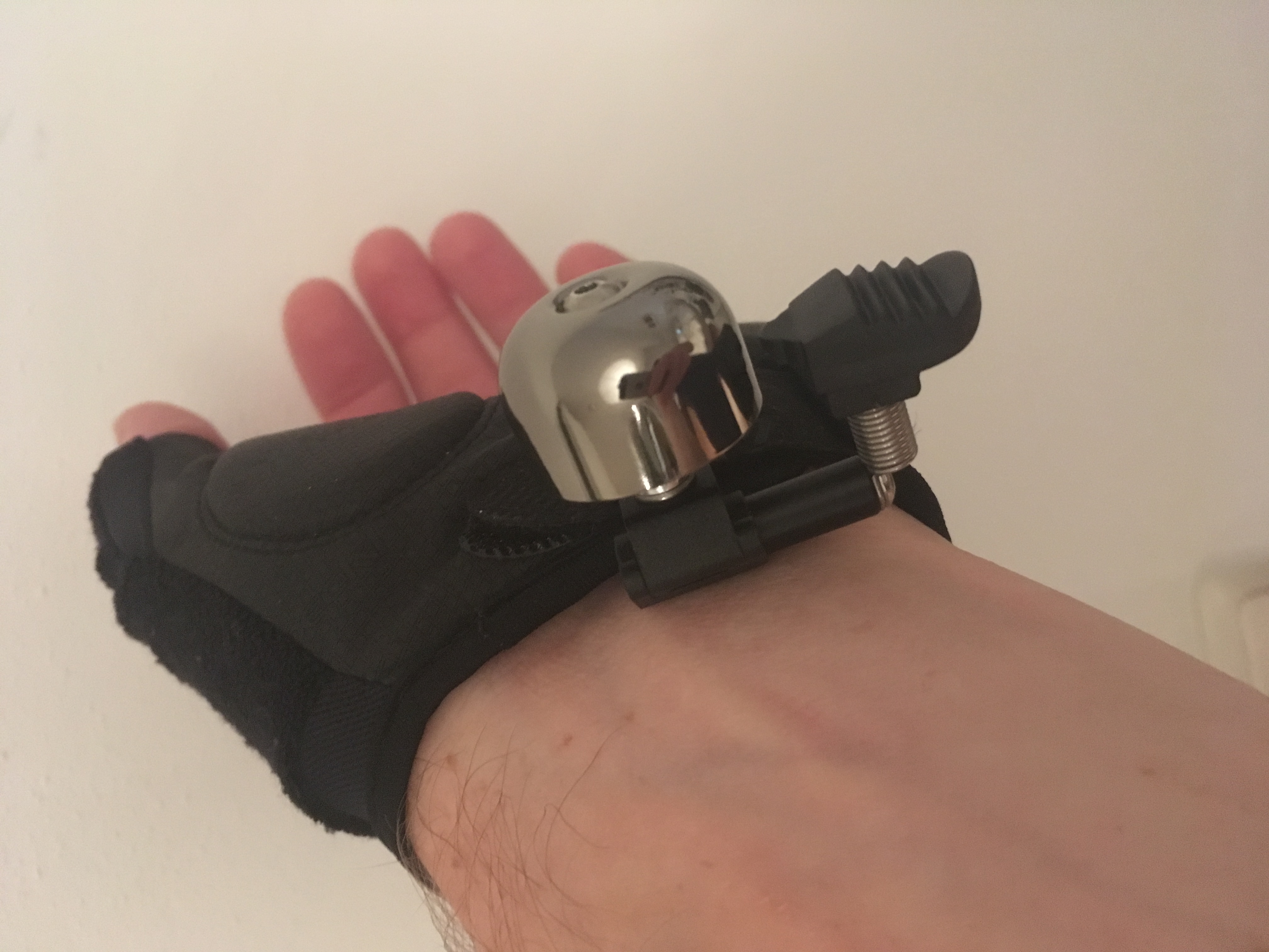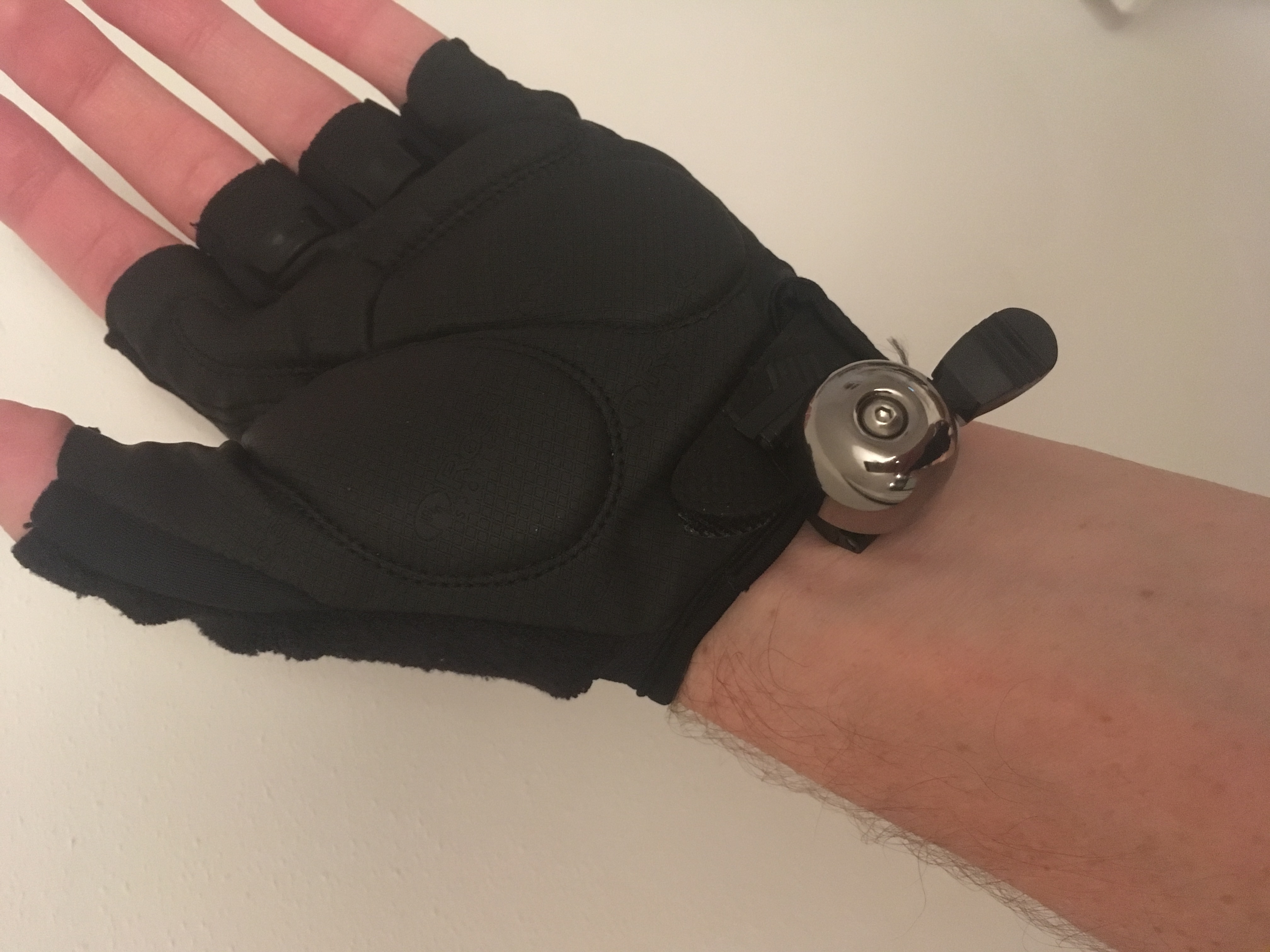 Ik heb hier een andere oplossing bedacht, een mini bel op je handschoen. Je kunt hem overal opschroeven, maar op je handschoen leek me wel handig en uit het zicht. Bestel- en youtube link staat in mijn vorige post.