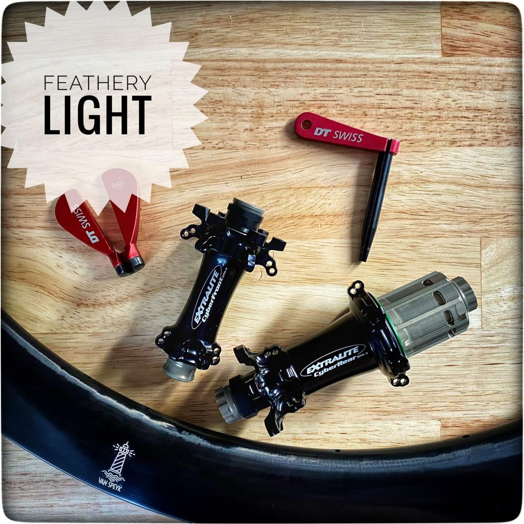 Mooi gewicht, extralite naven zijn 260gram als set denk ik?